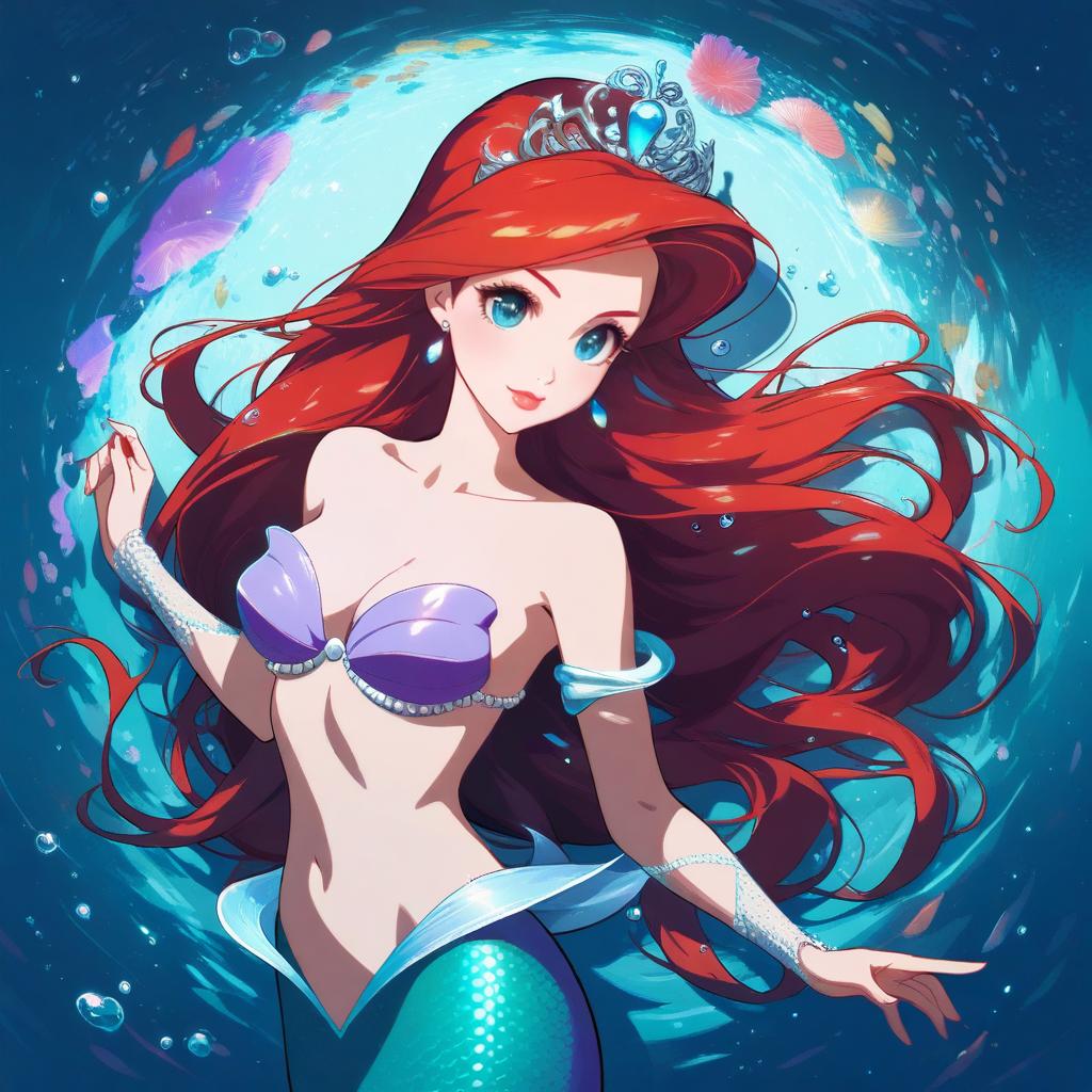 Illustration of Ariel (disney), the little mermaid in the style of Fuwa daisuke
