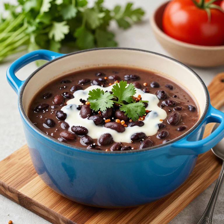 Hearty Black Bean Soup in Blue Dutch Oven
