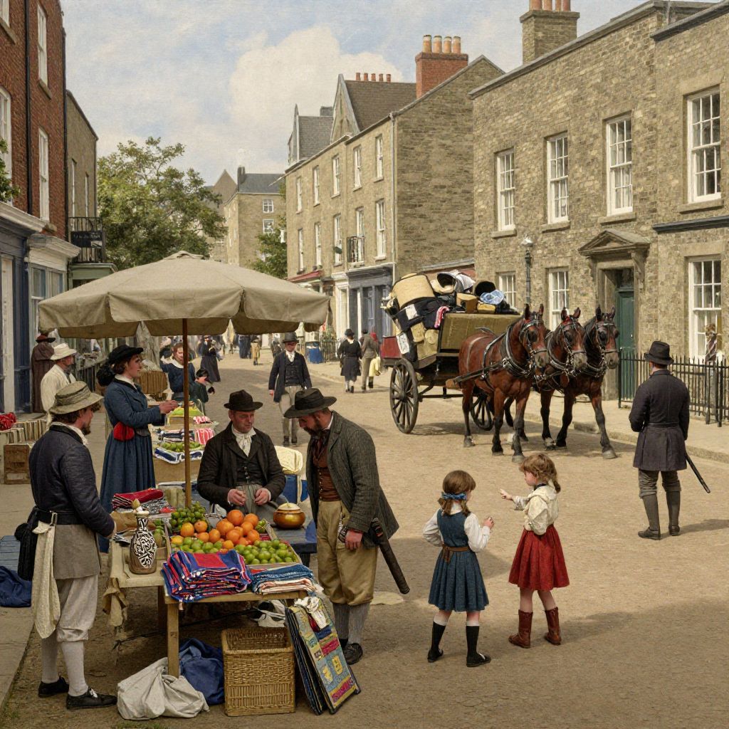 Victorian Marketplace Bustling Daytime Scene