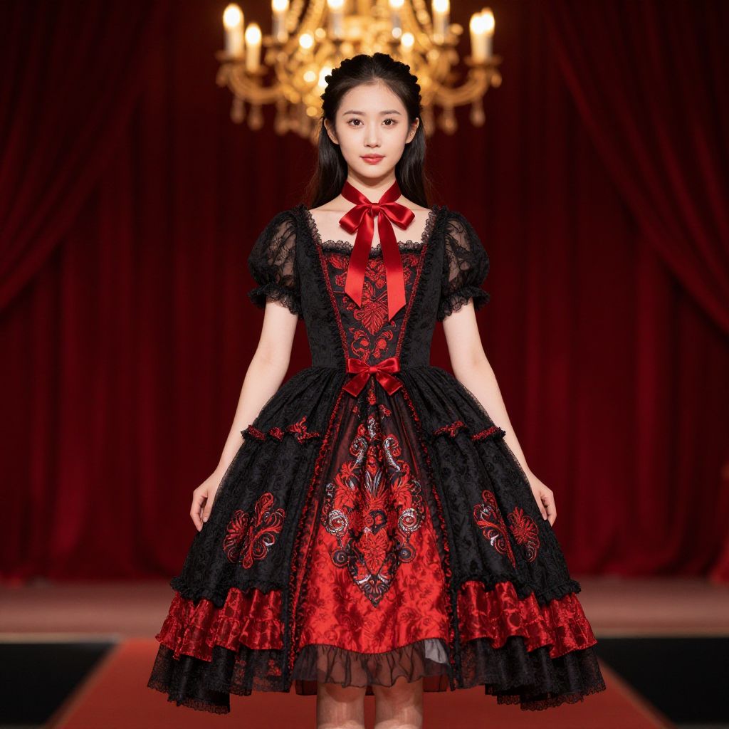 Elegant Woman in Red and Black Dress