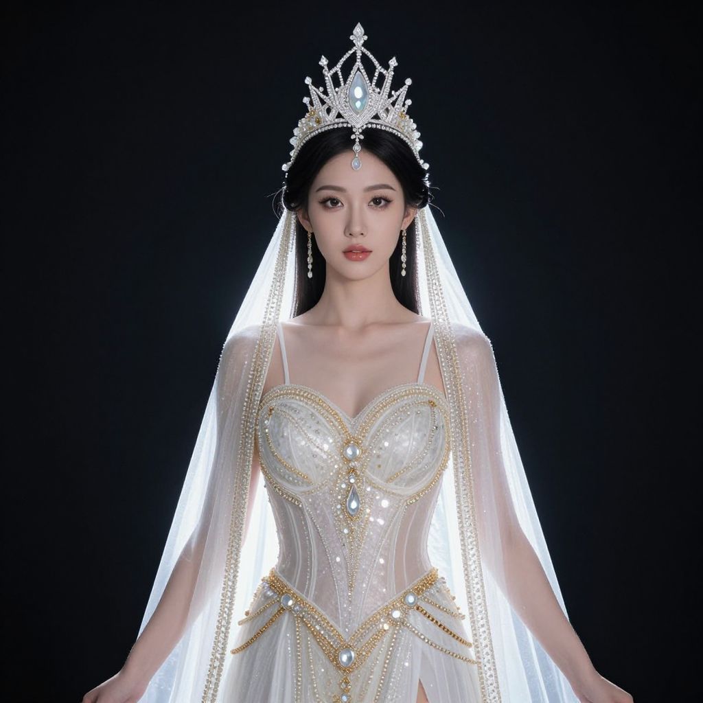 Goddess light costume, a woman in a costume with a crown on her head