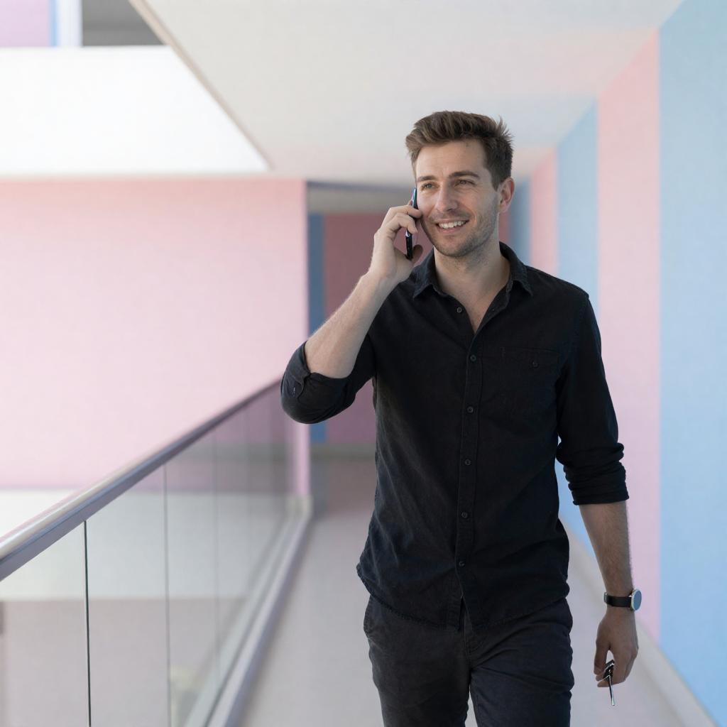 Man Taking Selfie with Camera and Smartphone Outdoors