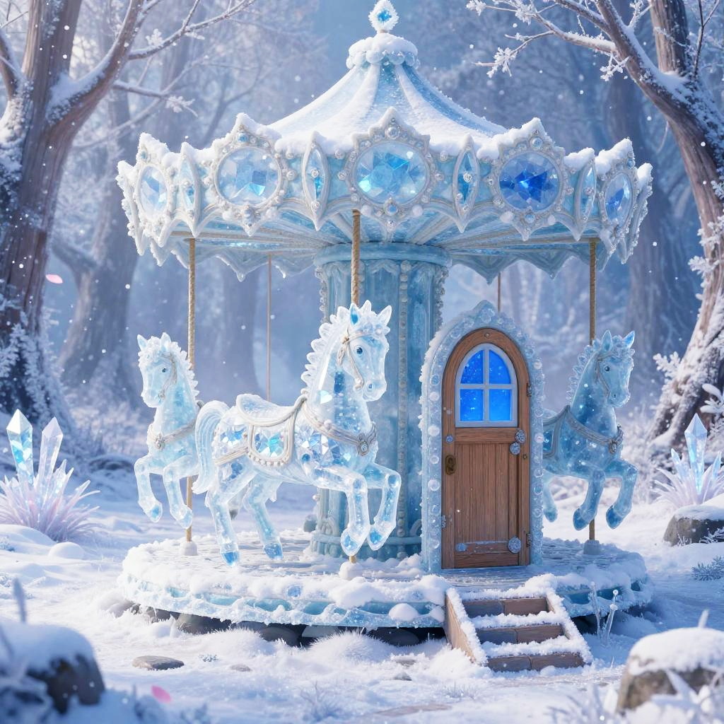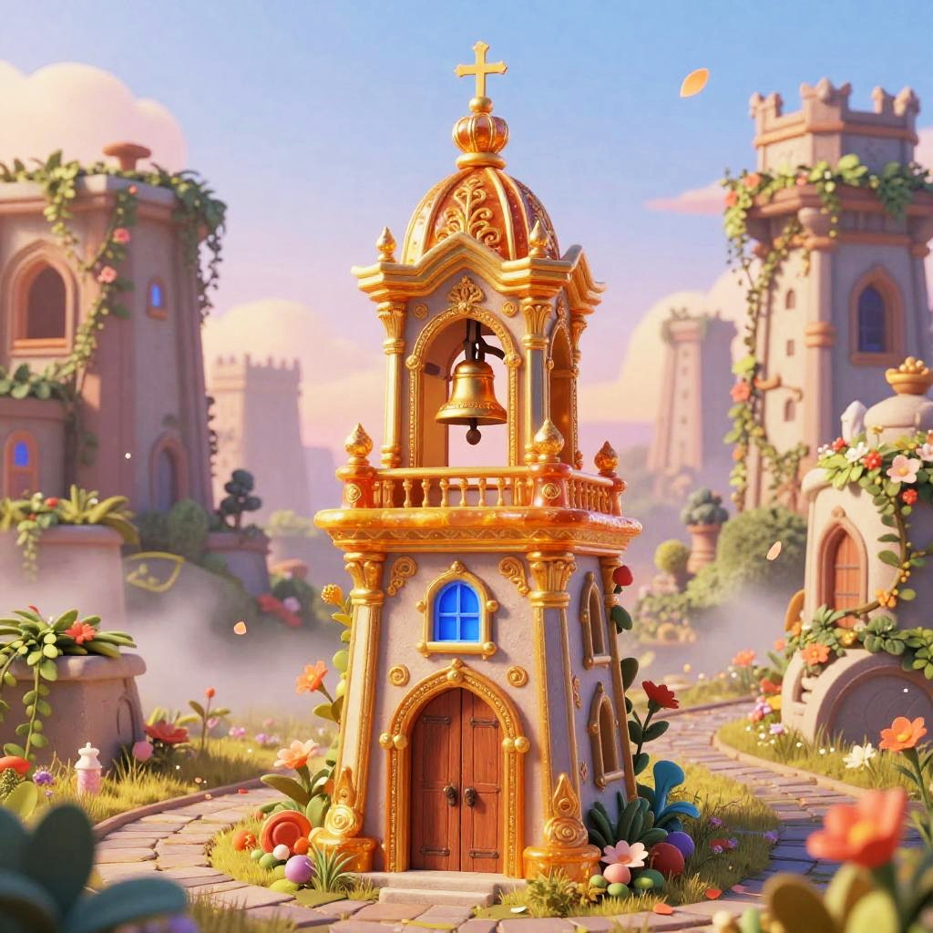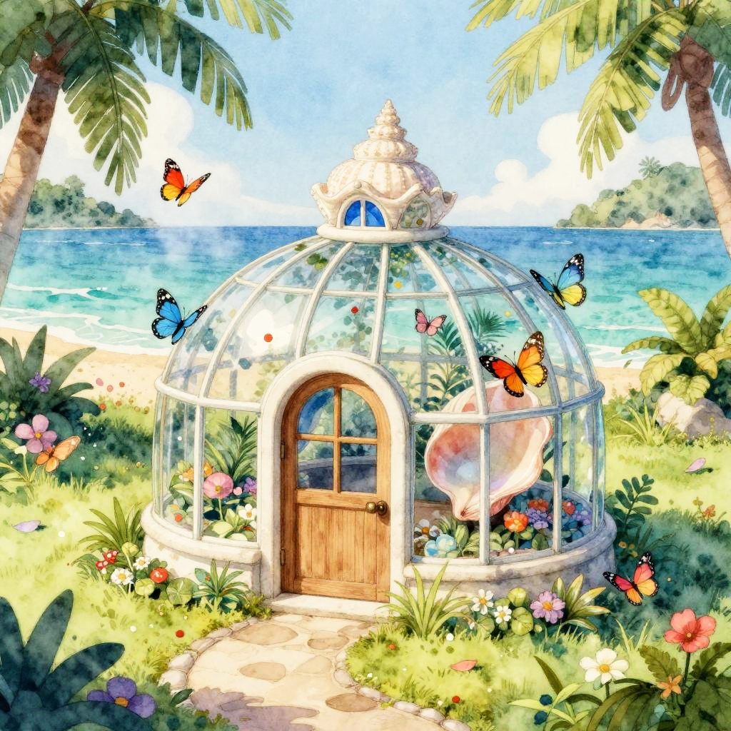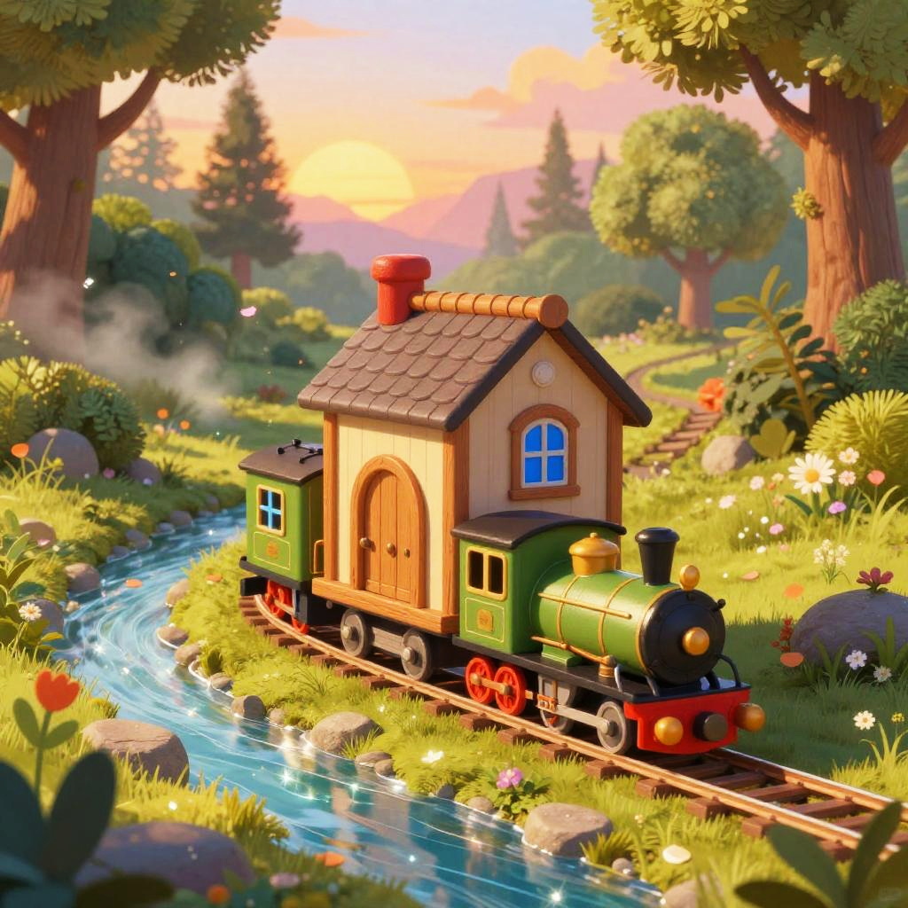 A colorful, magical illustration featuring whimsical teardrop-shaped cabin made from polished driftwood, with a wooden arched door and a small blue window. The world around it is rocky seaside cliffs under a pastel dawn sky with curling seaspray, sprinkled with charming details like winding stone paths, soft mist, and drifting petals. Rendered in stylized 3D render, with gentle, luminous lighting, saturated yet harmonious palette, high detail, soft textures, cozy and imaginative storybook mood, crisp focal point, and subtle depth of field.
