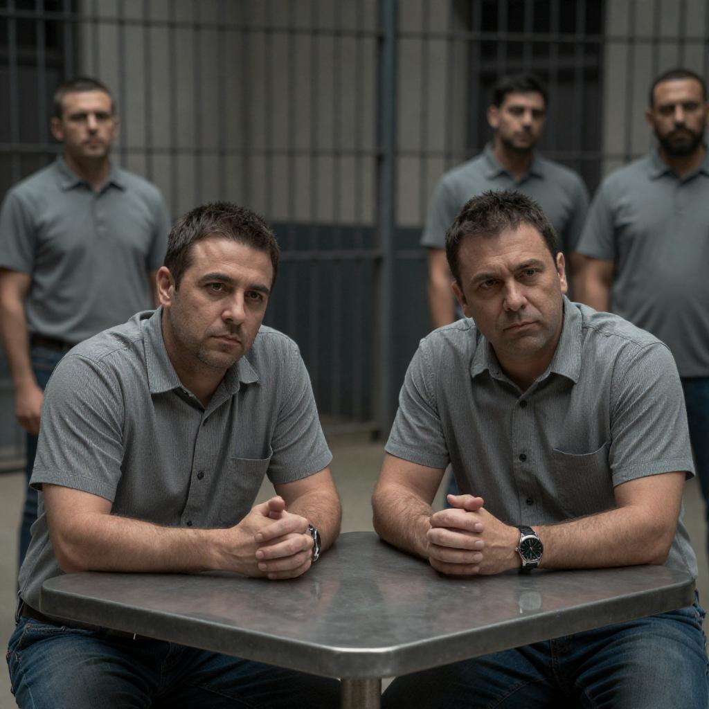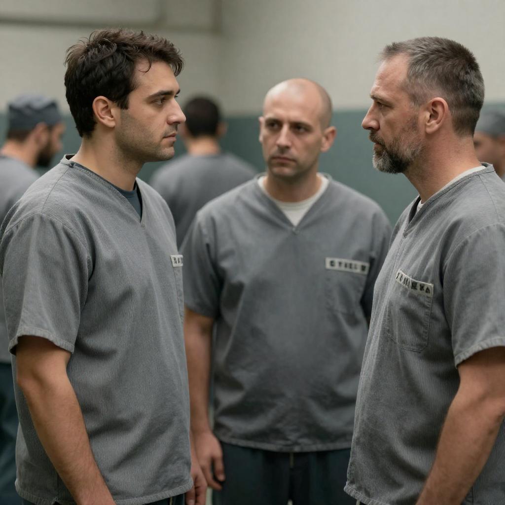 Confrontation in Dimly Lit Prison Yard