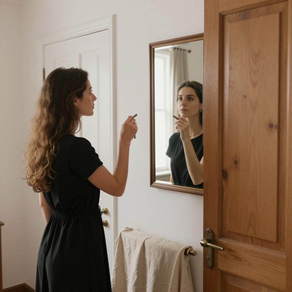 Couple Smiling in Bathroom Mirror Reflection