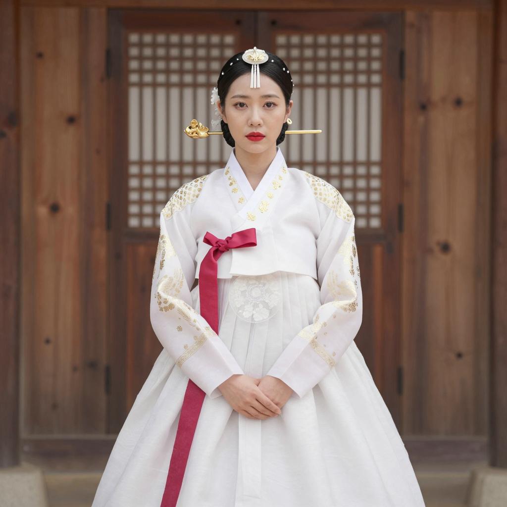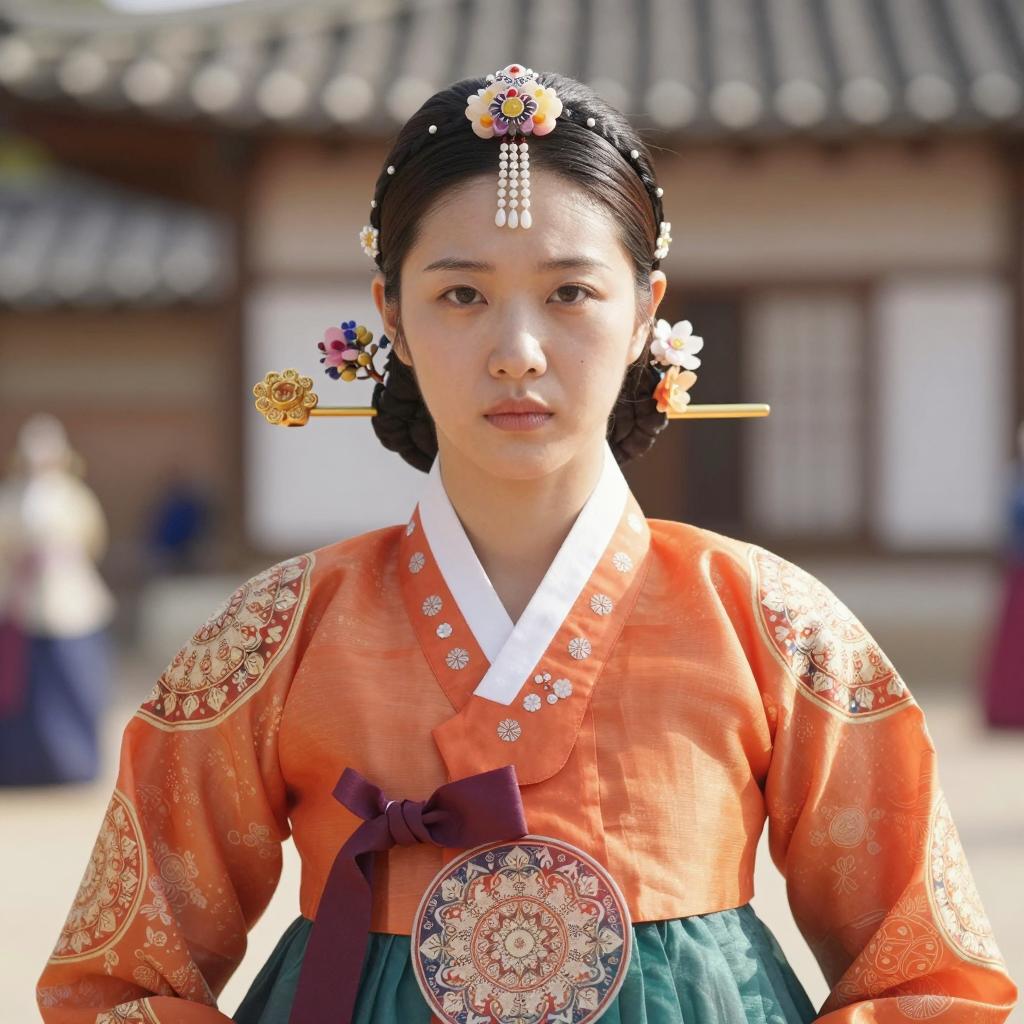 Elegant Young Woman in Traditional Hanbok