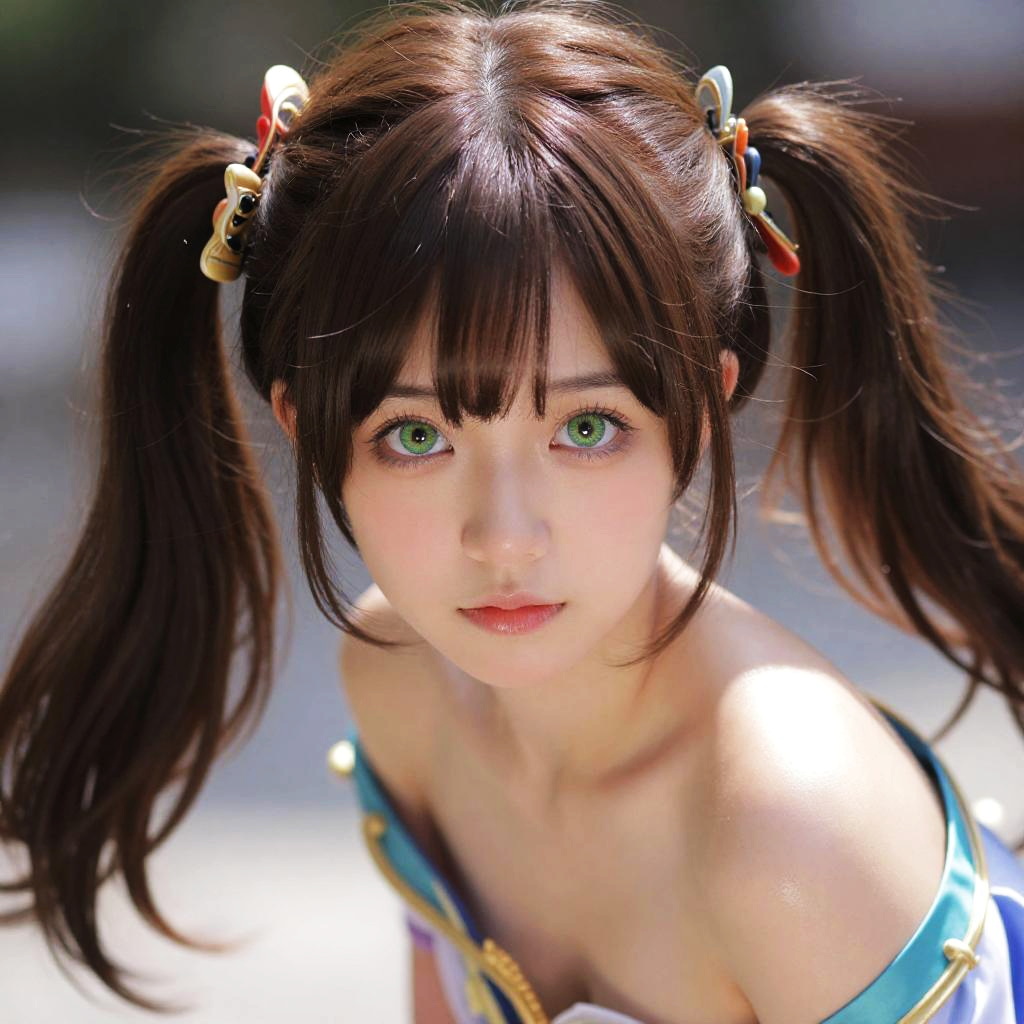 ((masterpiece)), breasts, looking_at_viewer, qingque hsr, 1girl, solo, (two tails hair:1.3), brown_hair, hair_ornament, bangs, green_eyes, masterpiece, best quality, high quality, absurdres, shiny skin, colorful, dynamic pose, stunning art, hyper detailed, dynamic angle, beatlful detailed, reflective hair, good lighting, ray tracing, depth of field, ultra-detailed, illustration, Amazing, fine detail, extremely detailed, ((ultra-detailed)), (beautiful detailed girl), beautiful detailed glow, intricate detail, highres, an extremely delicate and beautiful, beautiful detailed eyes, realistic, hdr, rounded eyes, detailed facial features, (illustration), (beautiful detailed eyes), ((very detailed face)), depth_of_field, eyebrows_visible_through_hair, frills, outdoors, (upper body:1.4), (casual, black bikini:1.5), (bare shoulder, frills:1.4), clothes reflecting light, (light diffraction on skin: 1.35), (glossy skin: 1.55), (Iridescence Effect: 1.55), (sunset, beach, tree:1.5)