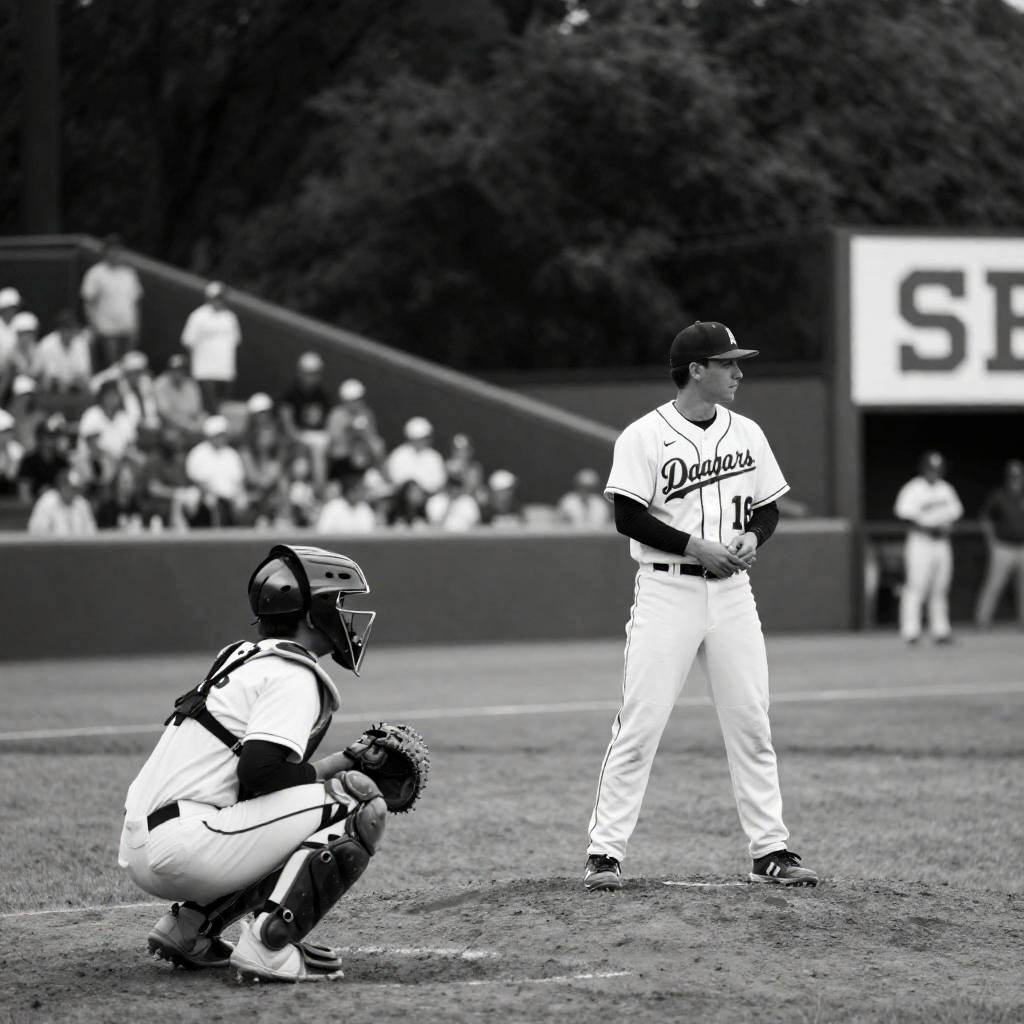 Classic Baseball Game in Black and White