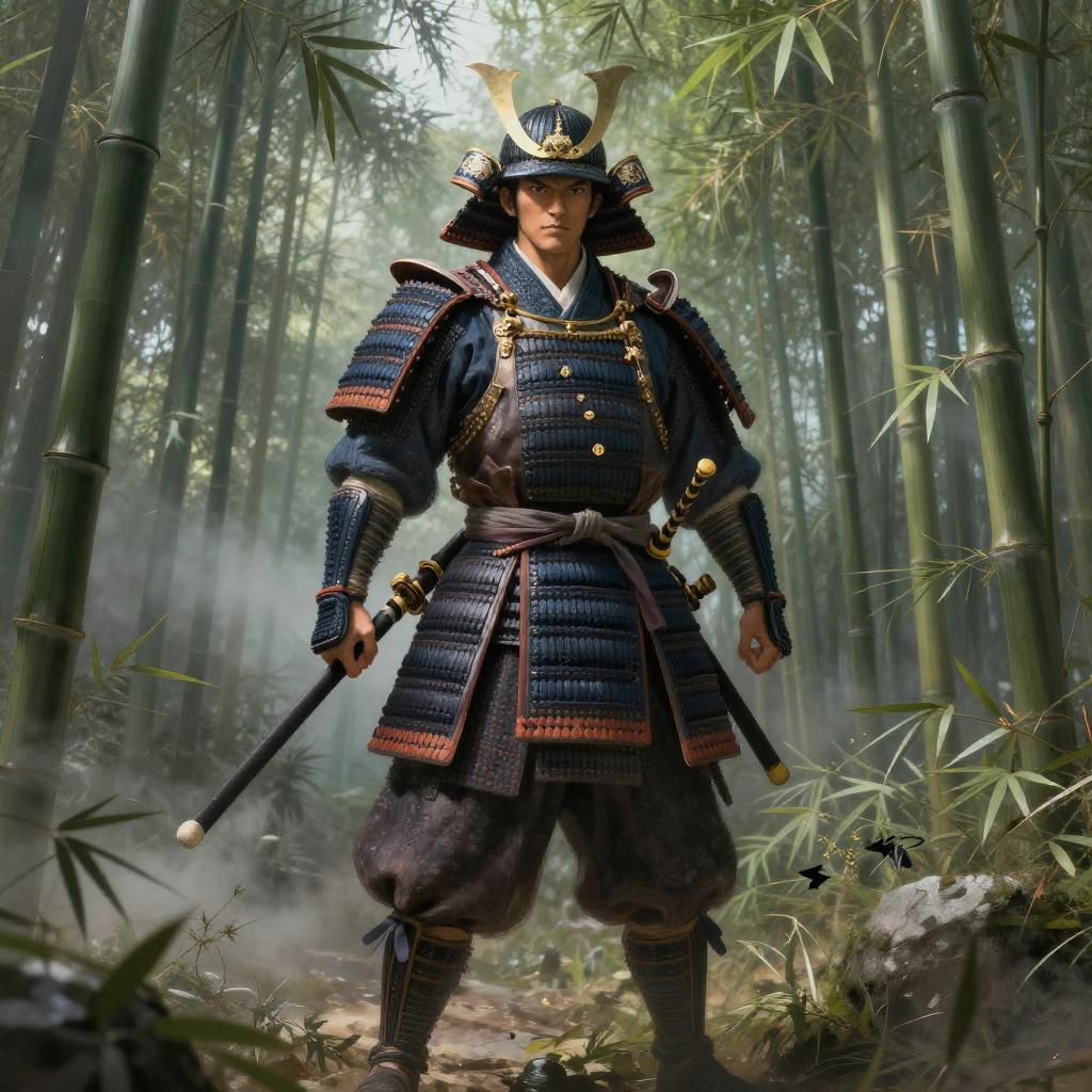 Fierce Samurai Warrior in Misty Forest