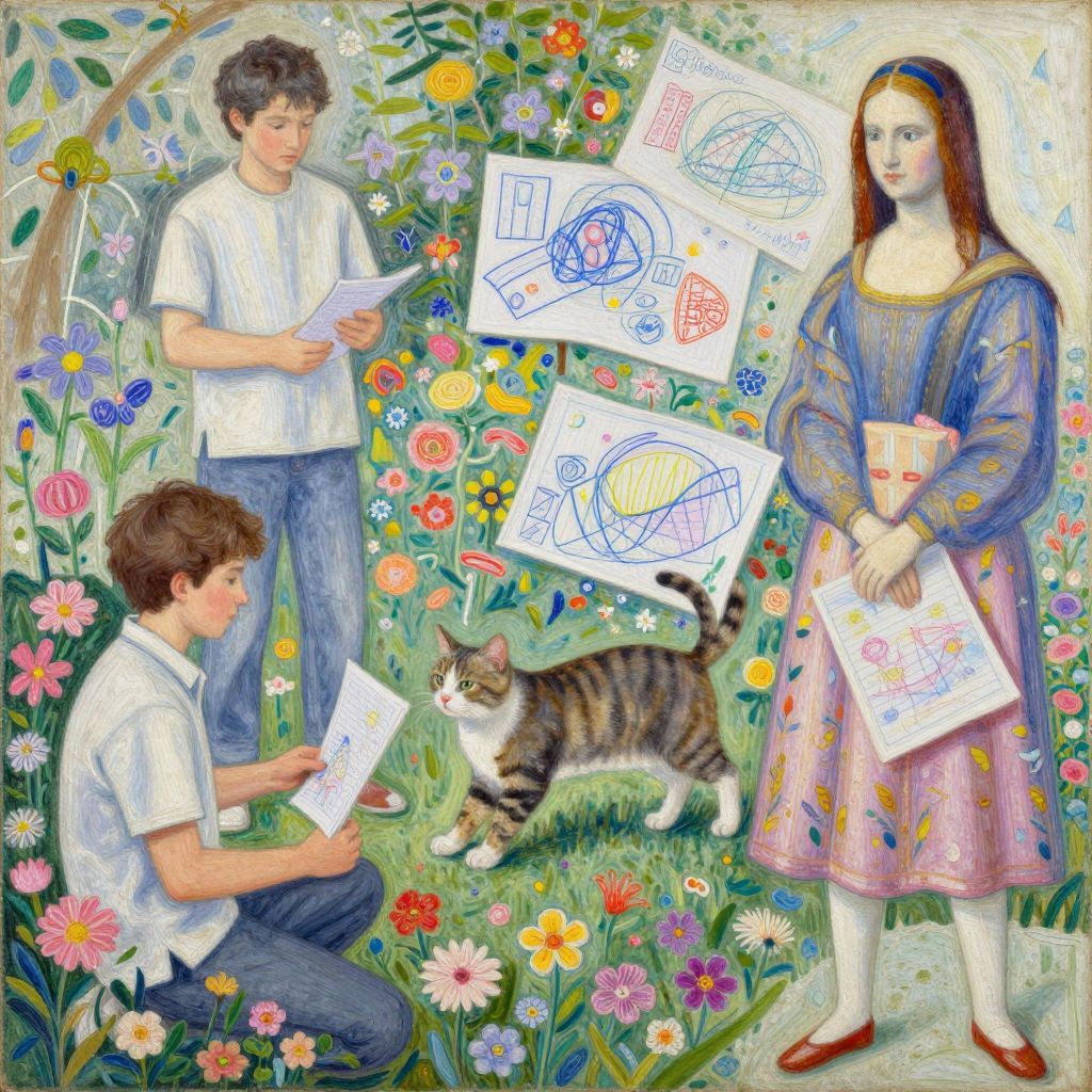 Cat Playing in Floral Garden Artwork