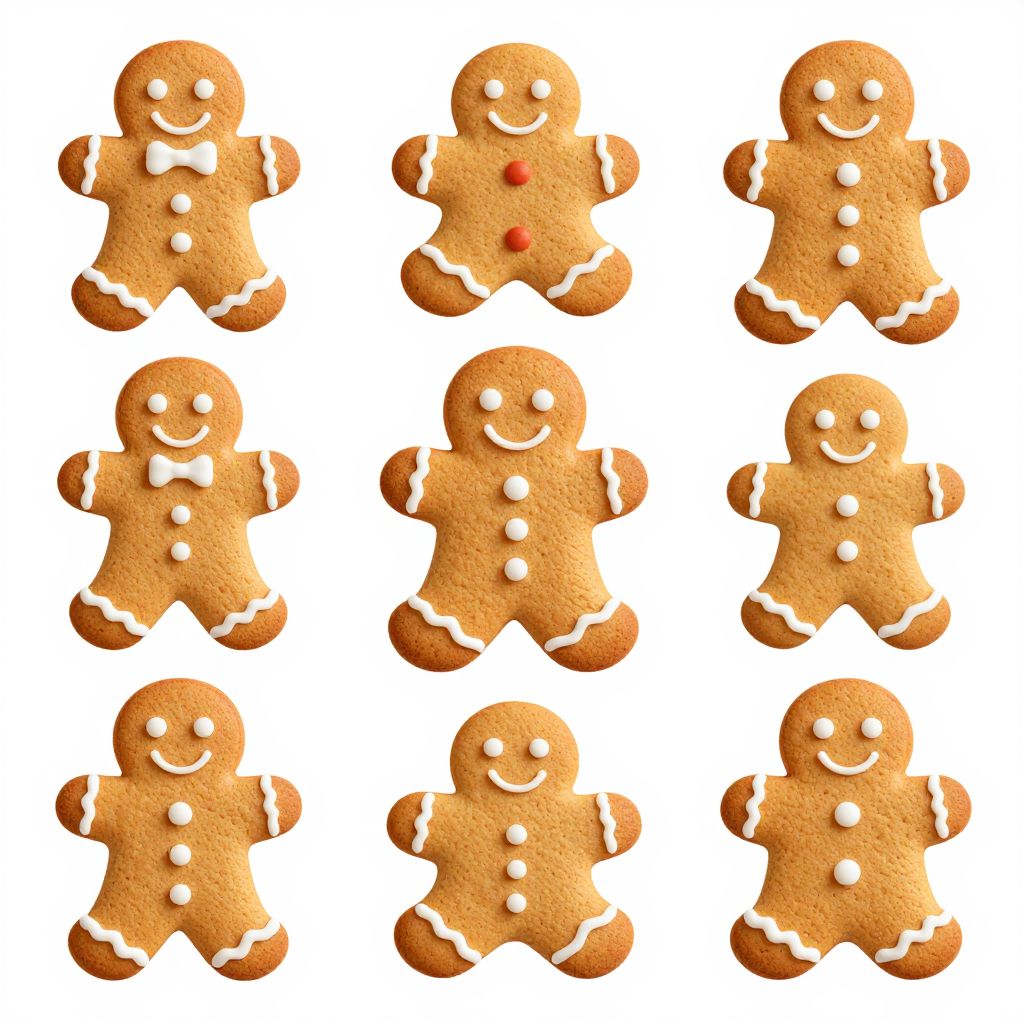 Two festive sugar cookies, shaped as a Christmas tree and a gingerbread man, are artfully decorated with green icing, red ribbon details, and colorful sprinkles, resting elegantly on a white rectangular plate.