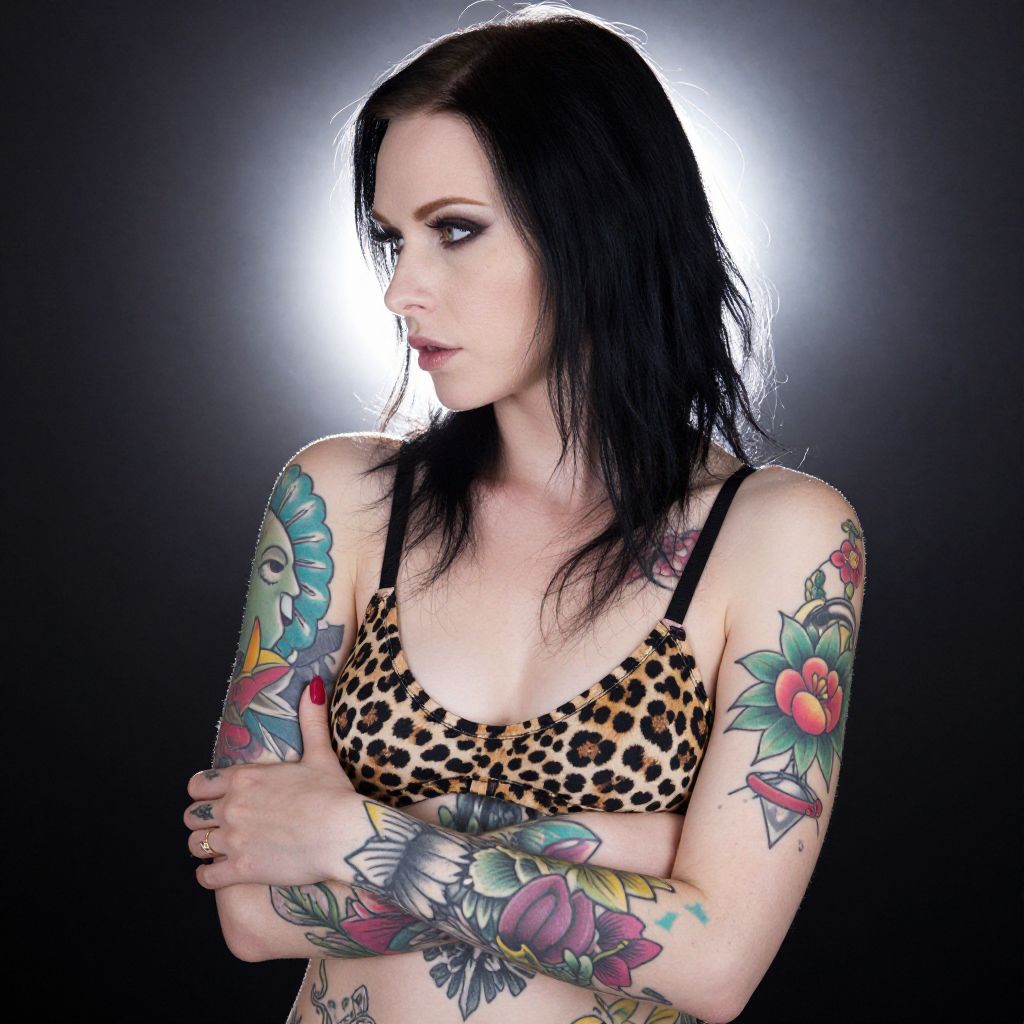 Tattooed Woman with Black-and-Silver Hair
