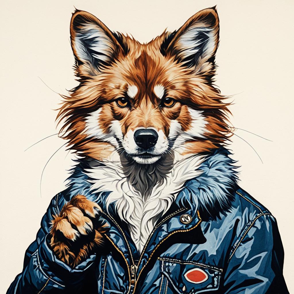 Stylized Portrait of Anthropomorphic Dog in Winter Jacket