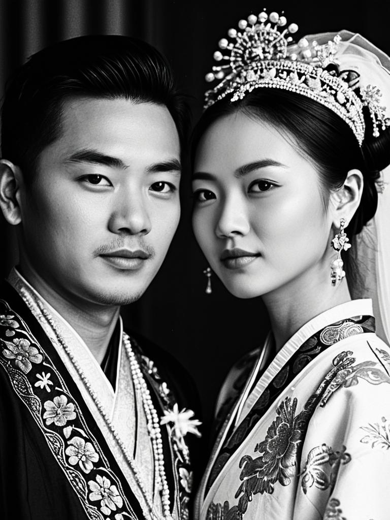 Couple in Luo Traditional Wedding attire, photorealistic detailed headshot