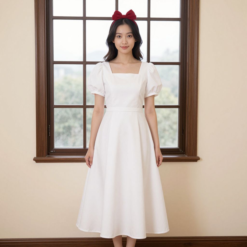 Snow White Dress Dress, woman in white dress standing in front of a window