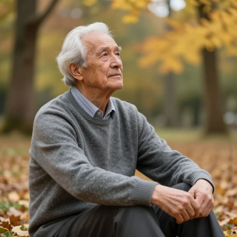 Elderly Reflection in Autumn Nature