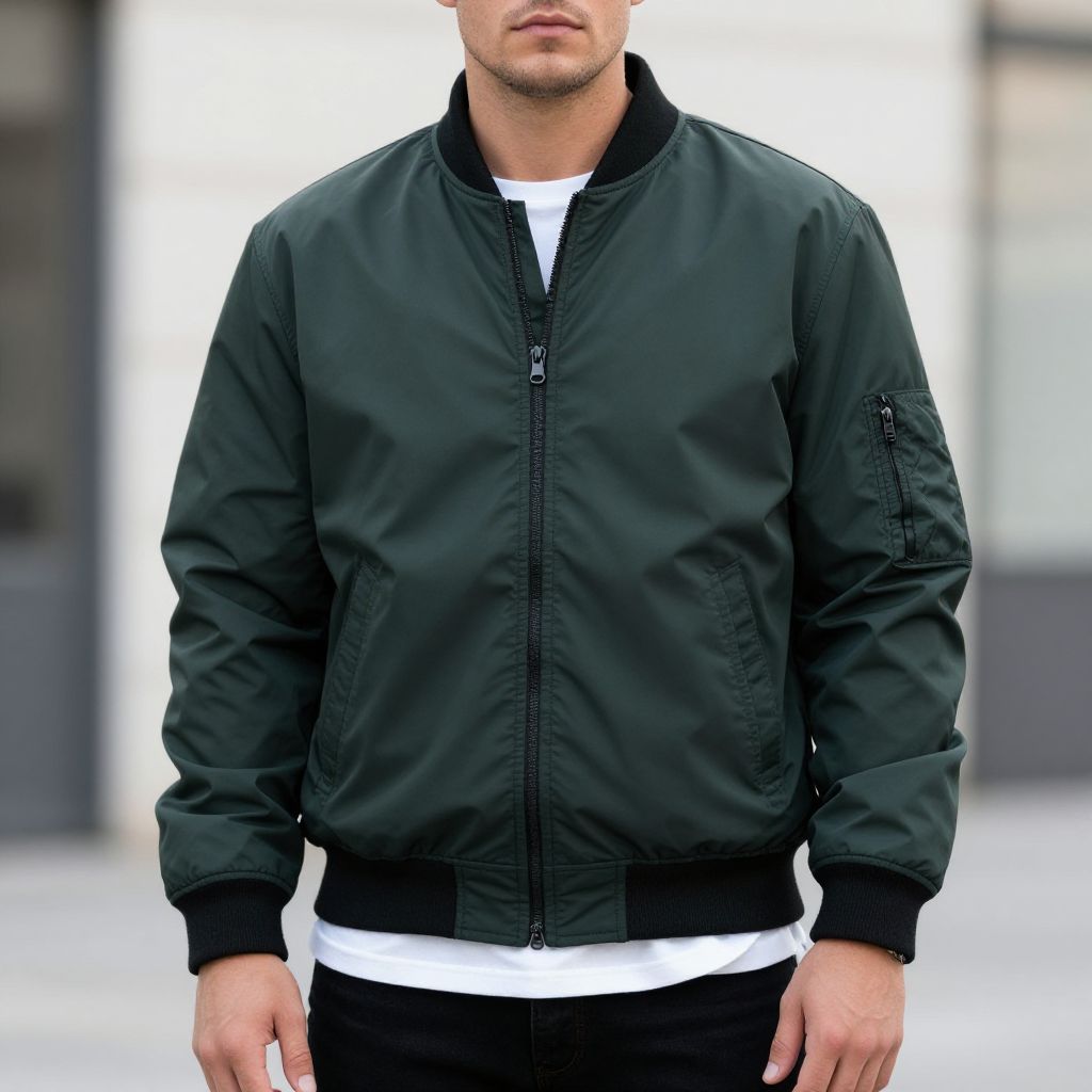 Streetwear bomber jackets, european man, casual style, trendy accessories, bold colors, realistic photography, outdoor urban setting, dynamic pose, high resolution, sharp focus, contemporary streetwear culture