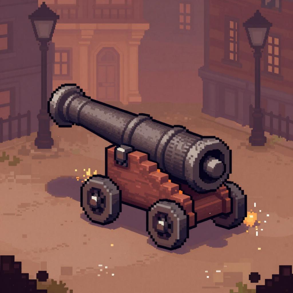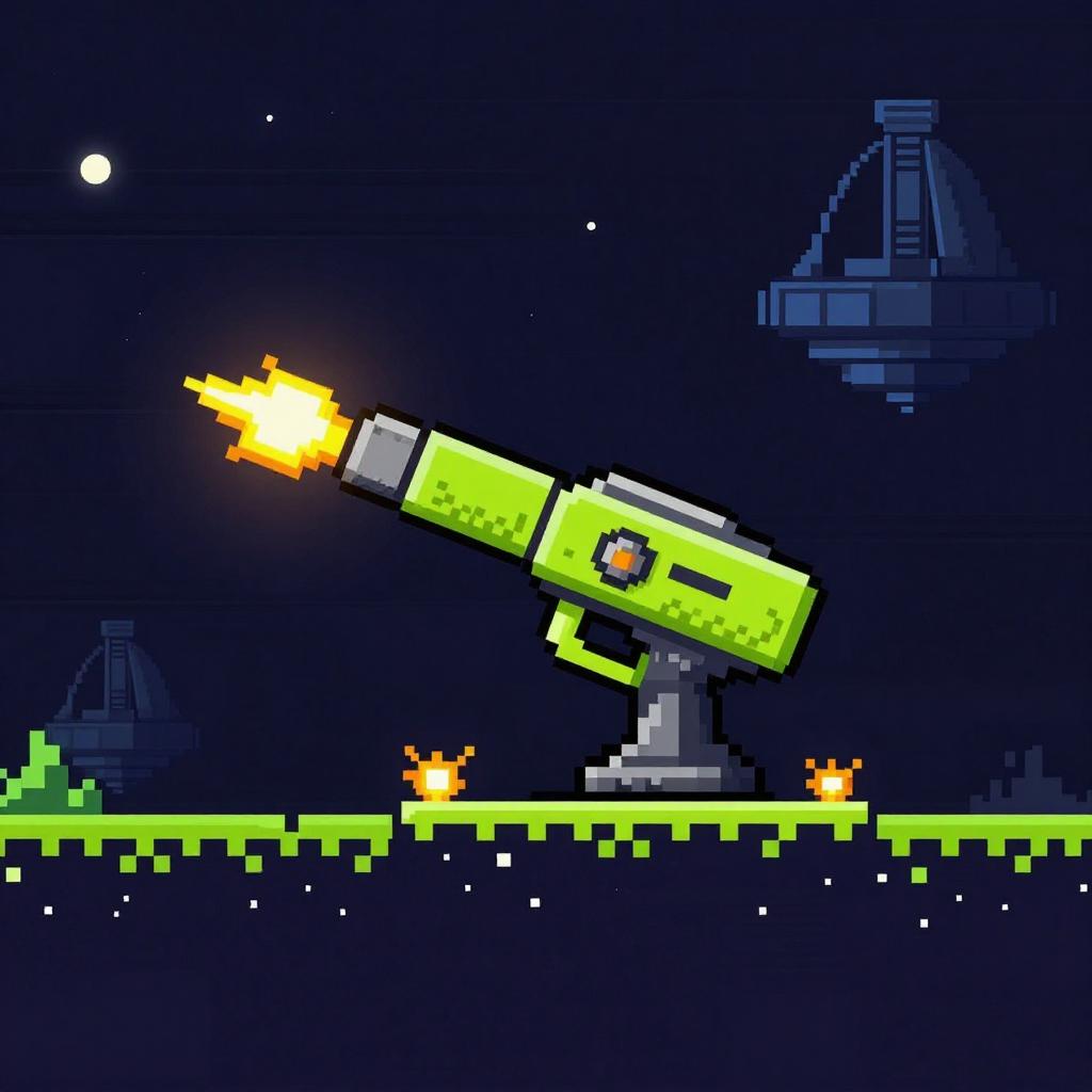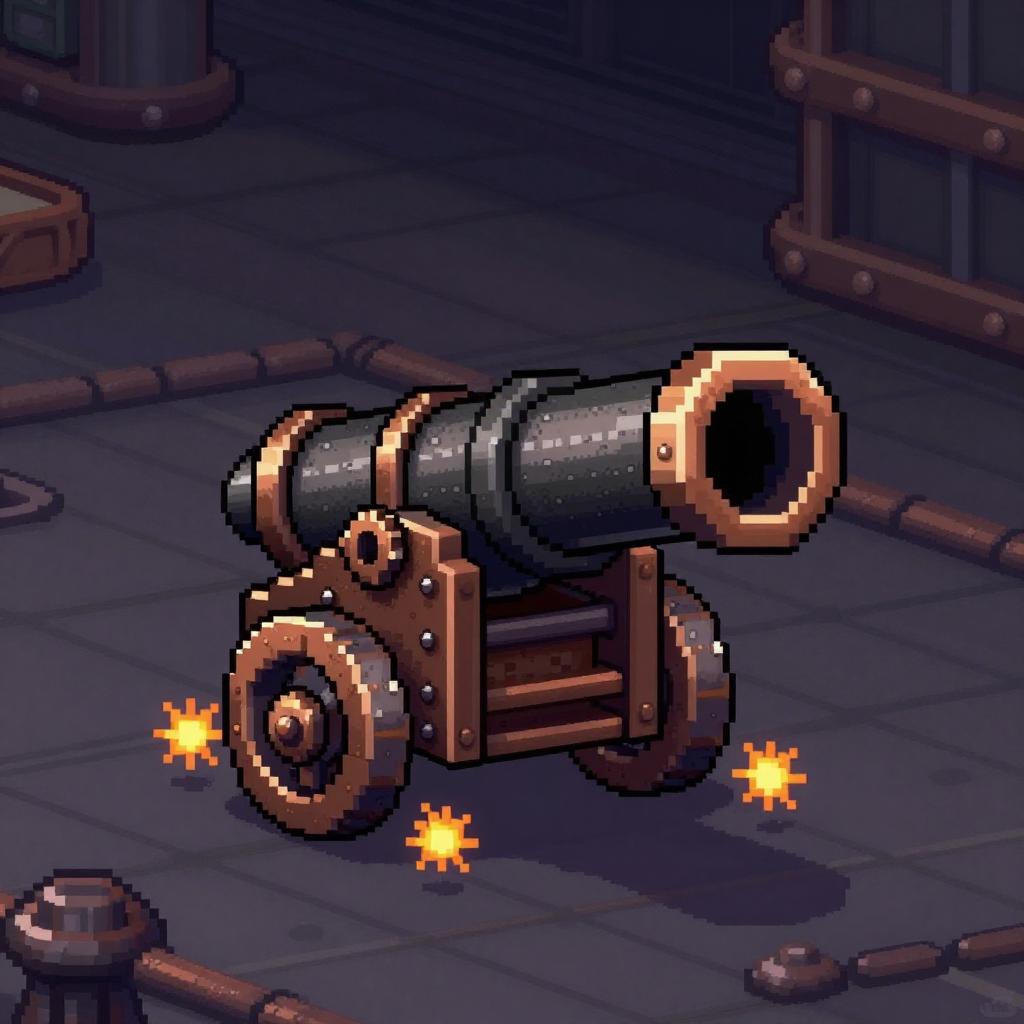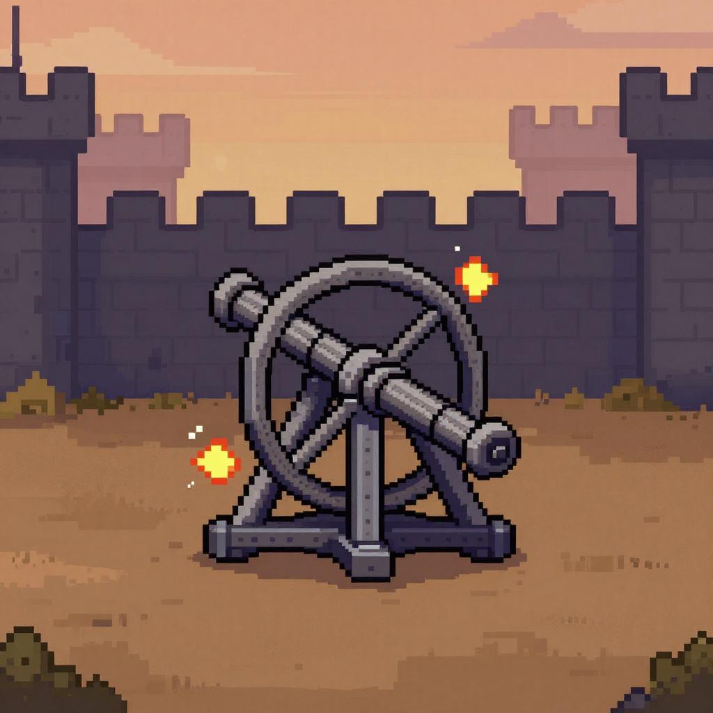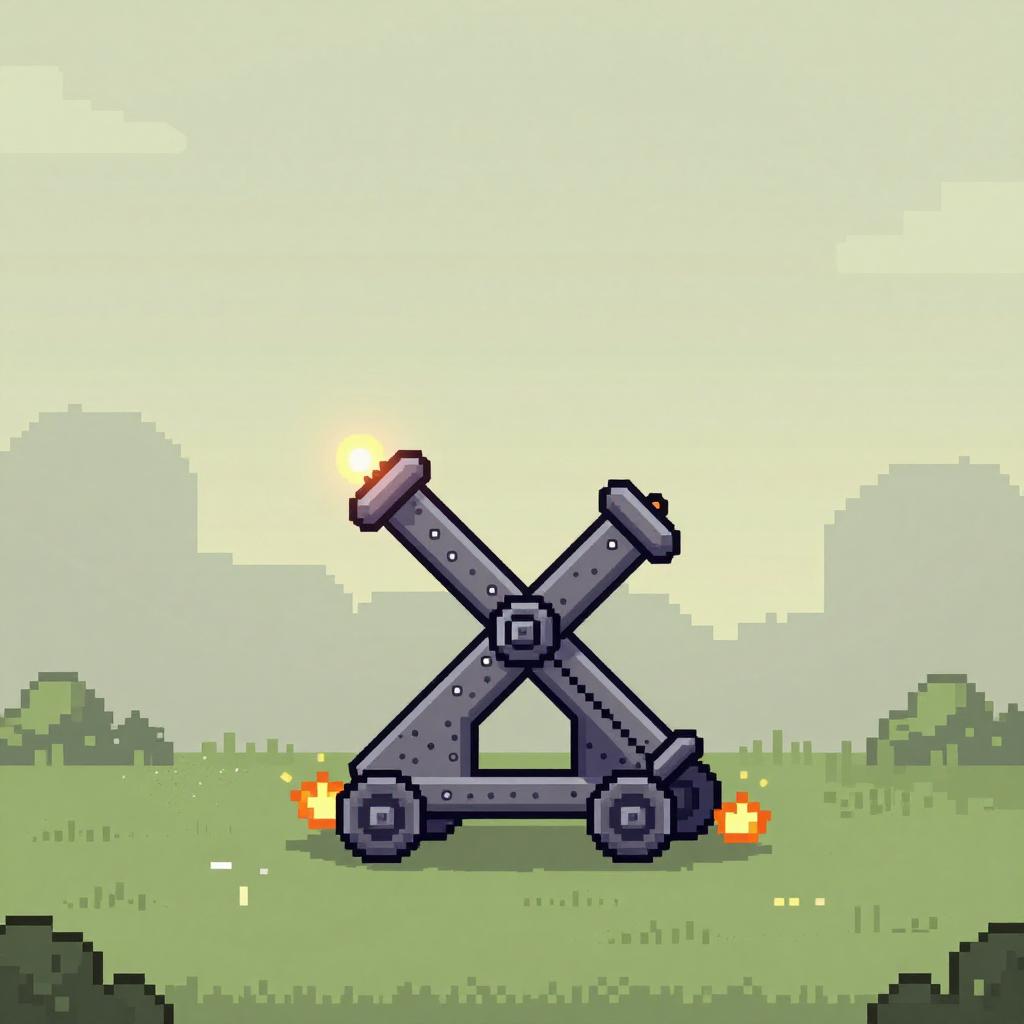 2d mythical phoenix flame turret, retro pixel art, battle-ready, rotating weapon assembly, textured detailing, small explosions and sparks around the base, volcanic crater edge, parallax background elements, ambient effects matching the scene, bold 1px outline, crisp dithering, sprite-sheet friendly, idle-to-fire loop implied, crt bloom and subtle scanlines, dynamic rim light, strong cast shadow, centered composition, clean negative space, clear silhouette at tiny scales, fiery red and glowing amber