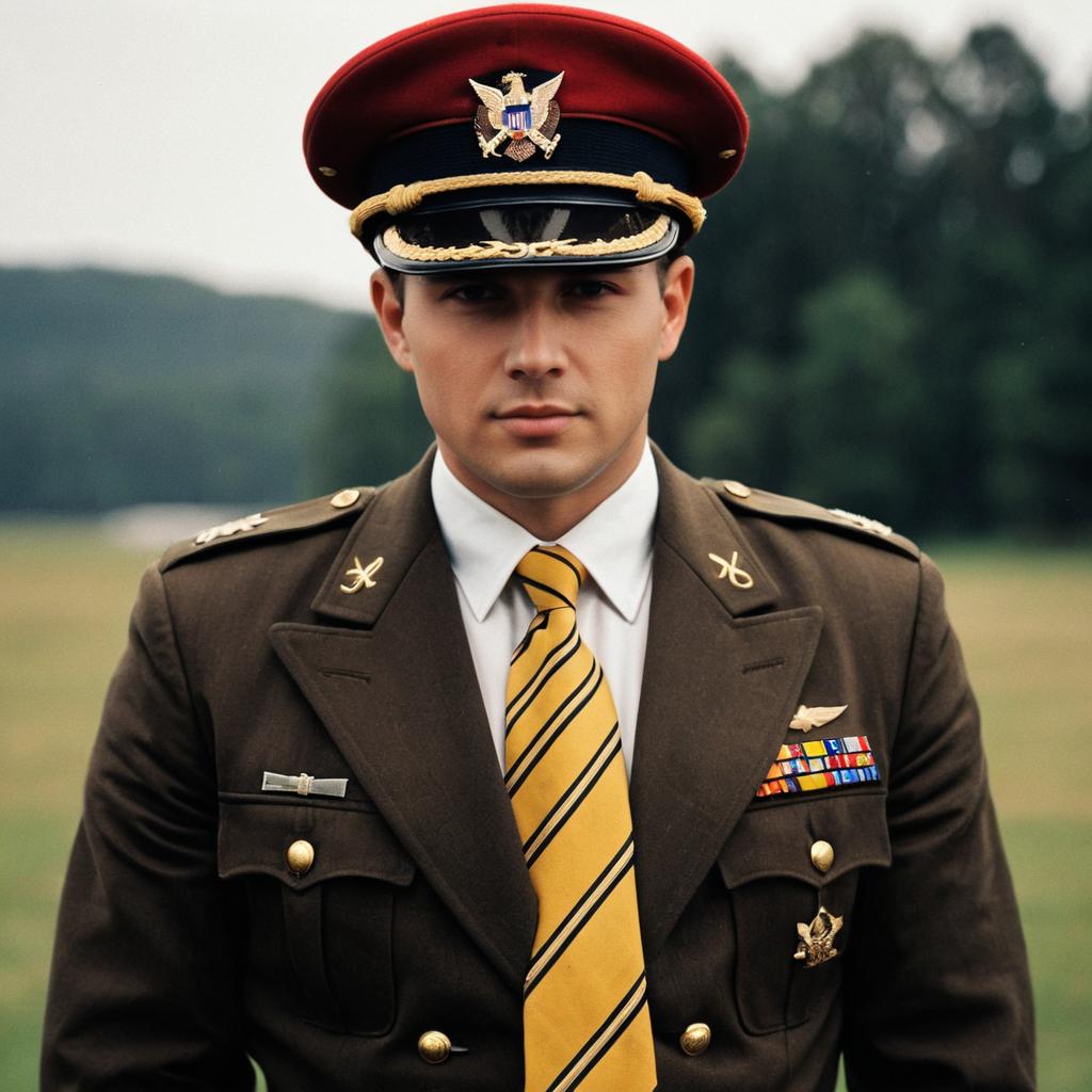 Captain fancy dress,1boy, male focus, solo, belt, realistic, looking at viewer, facial hair, brown hair, uniform, manly