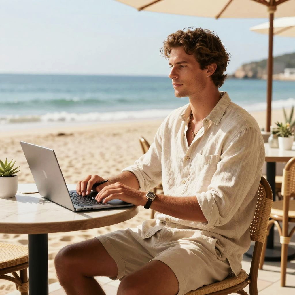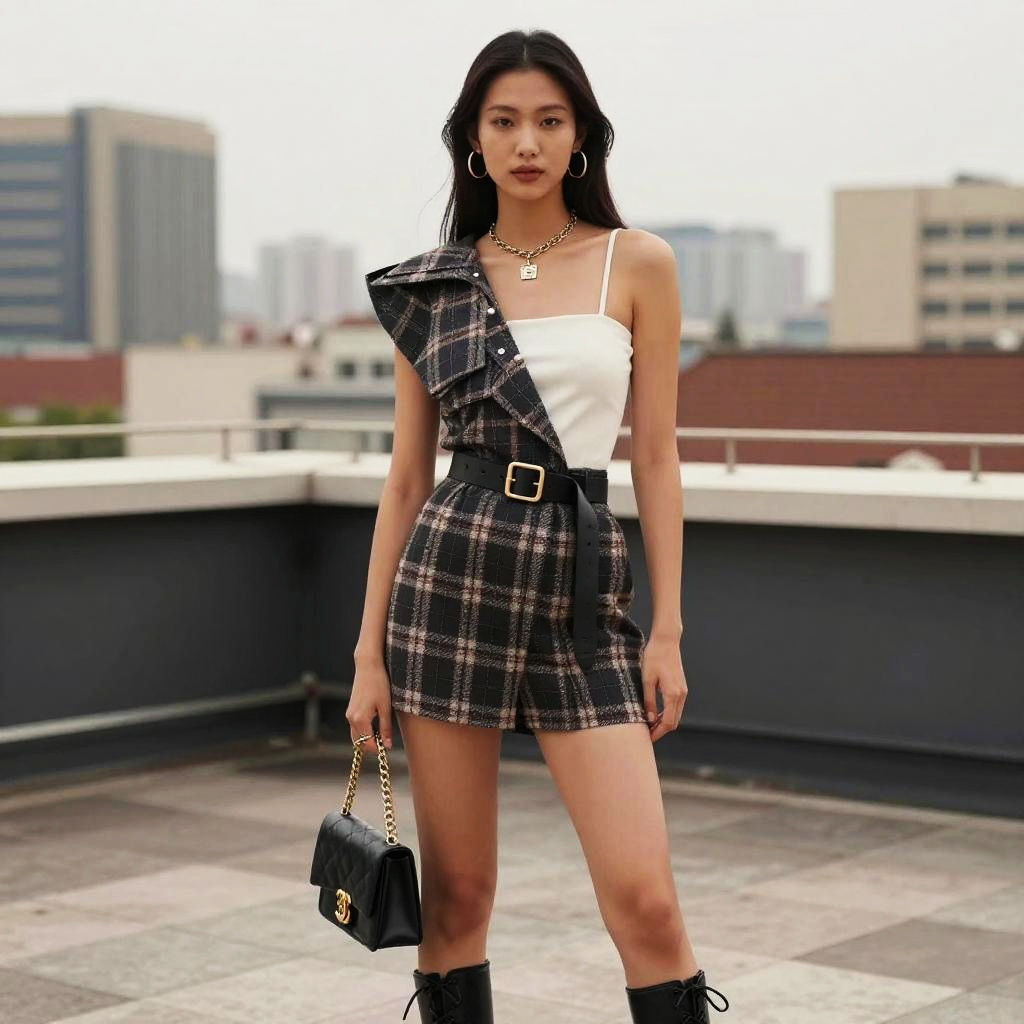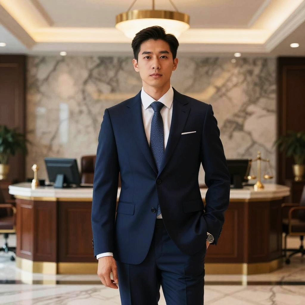 Glamour photography of a confident tech innovator, wearing a smart casual techwear outfit, photographed in a sleek startup workspace. The composition features professional lighting and a sophisticated atmosphere.