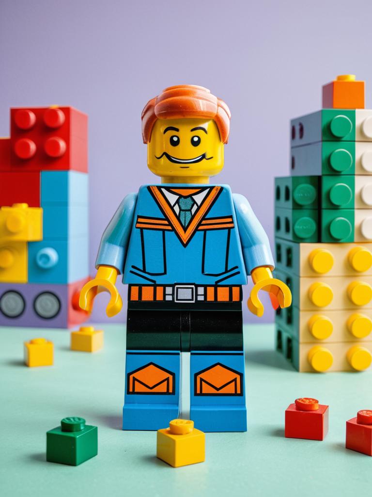 Man in Lego Pastel Building Blocks costume, professional cosplay studio photography