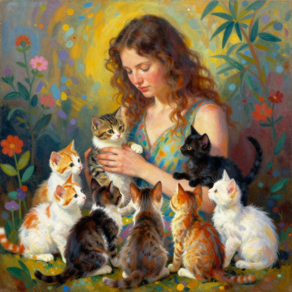 Mother with Psychedelic Playful Kittens
