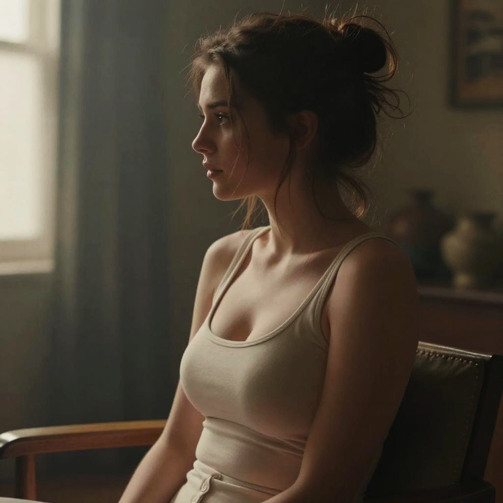 Dreamy Busty Woman in Cozy Room