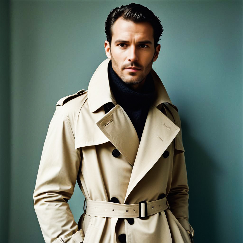 Confident Man in Beige Trench Coat
