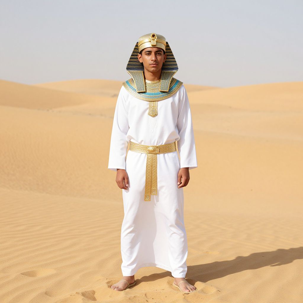 "adult egyptian costume, solo, 1boy, male focus, desert, full body, standing, egyptian clothes Realistic photo of casual sexy person with pretty face"