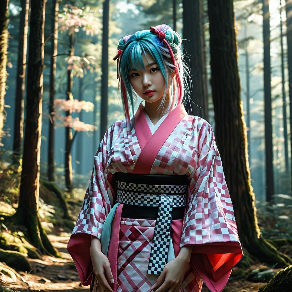 Multicolored Hair Girl in Kimono