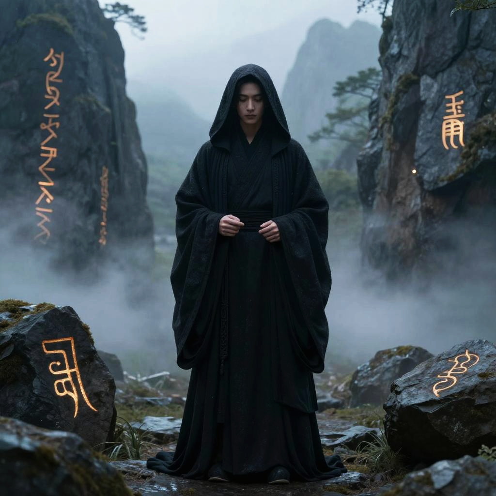 Weiгџer exploring an ancient ruin, illuminated by soft dawn light filtering through cracks in stone walls, surrounded by mysterious glowing glyphs on the ground, wearing explorer's gear mixed with futuristic tech elements, cinematic and atmospheric