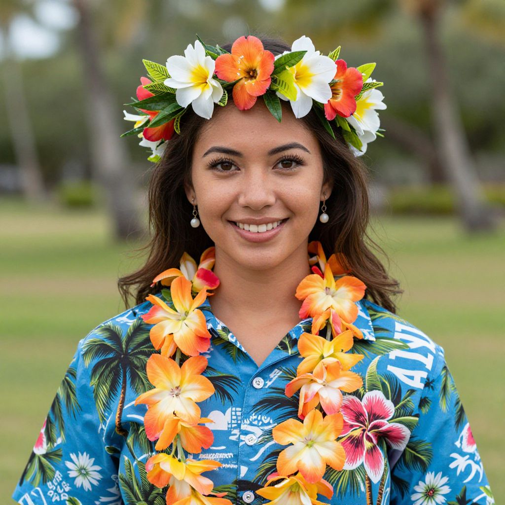 Realistic Woman in Hawaiian Luau Costume