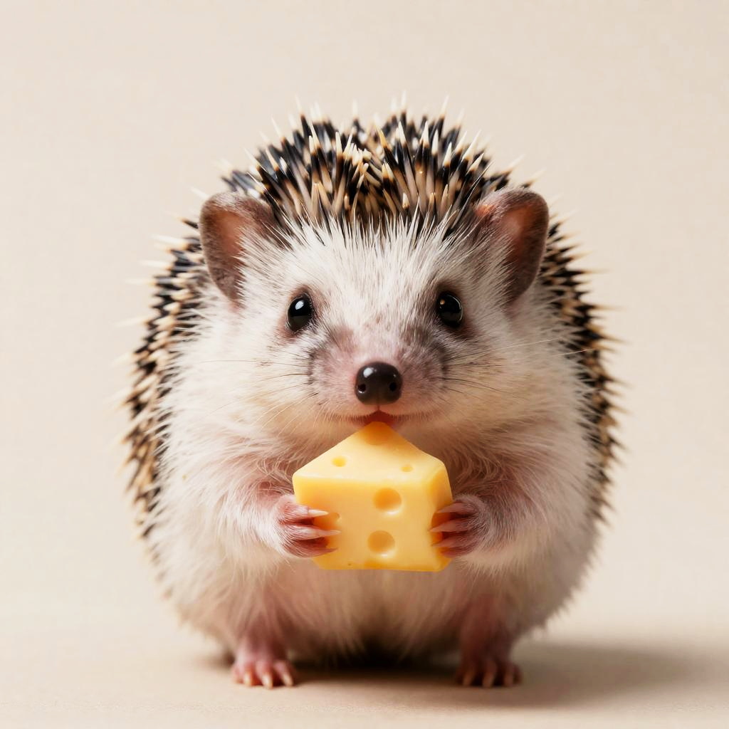 Tiny Hedgehog Holding Cheese, Front Portrait