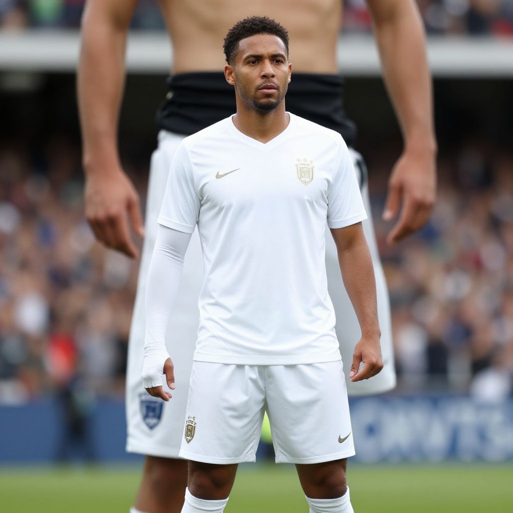 Alaves football team on a dynamic, rain-soaked pitch, intense action shot with players in blue and white, dramatic stadium lights glow, energetic crowd in background, cinematic sports photography style, vivid colors, high detail.