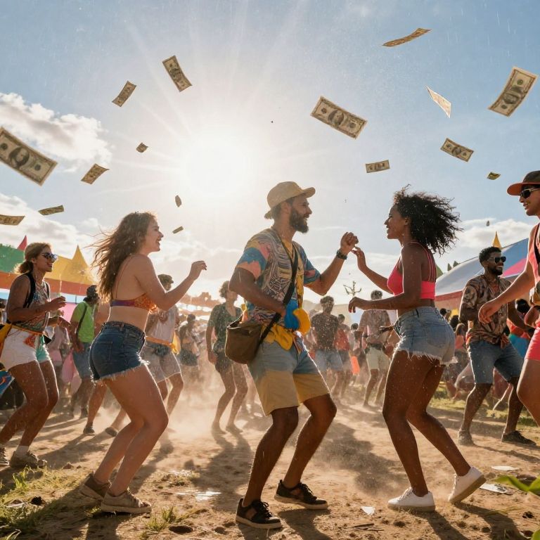 Inbetween G7 leaders dancing, festival, colors, sun, sunrays, party, raining dollars, photorealistic,