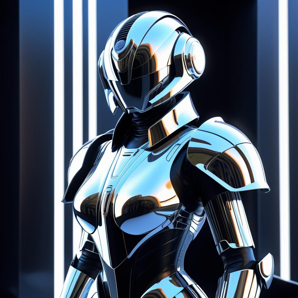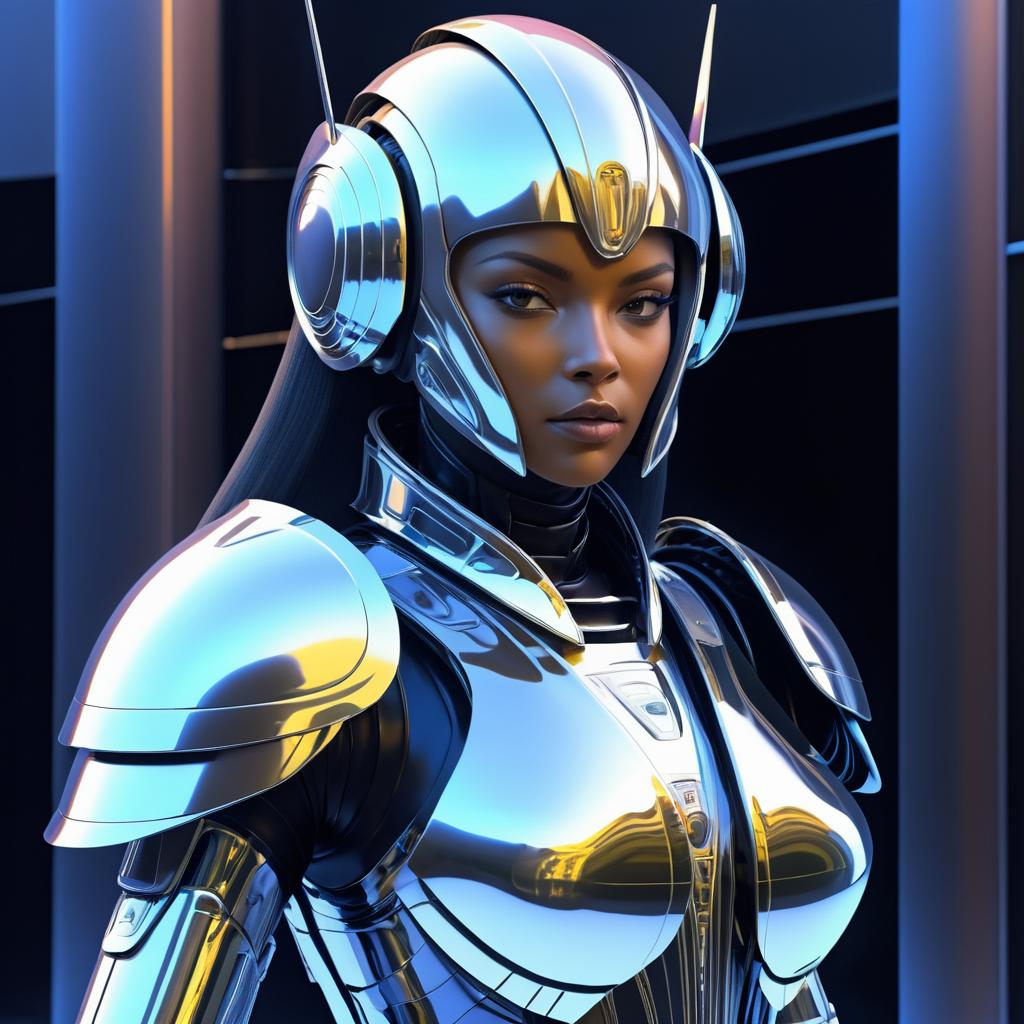 Futuristic Robot Woman in Metallic Armor