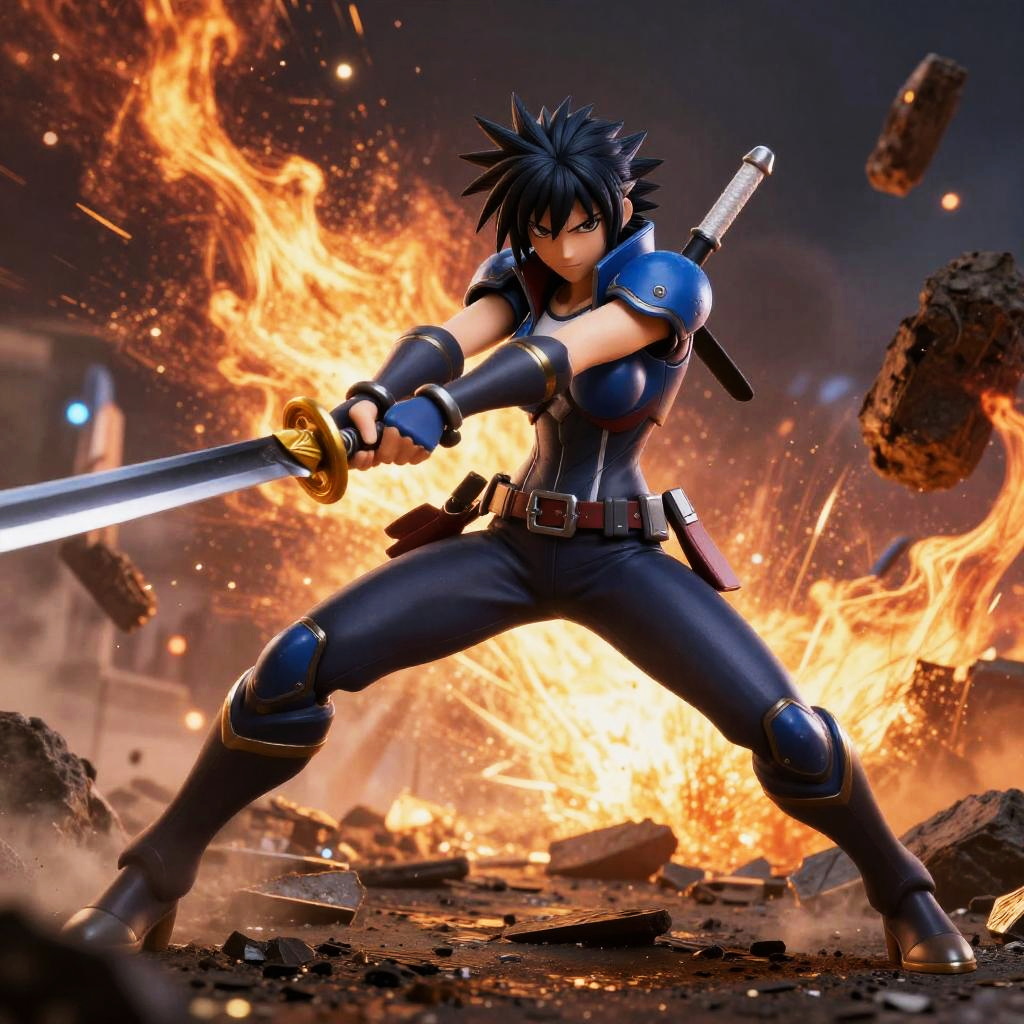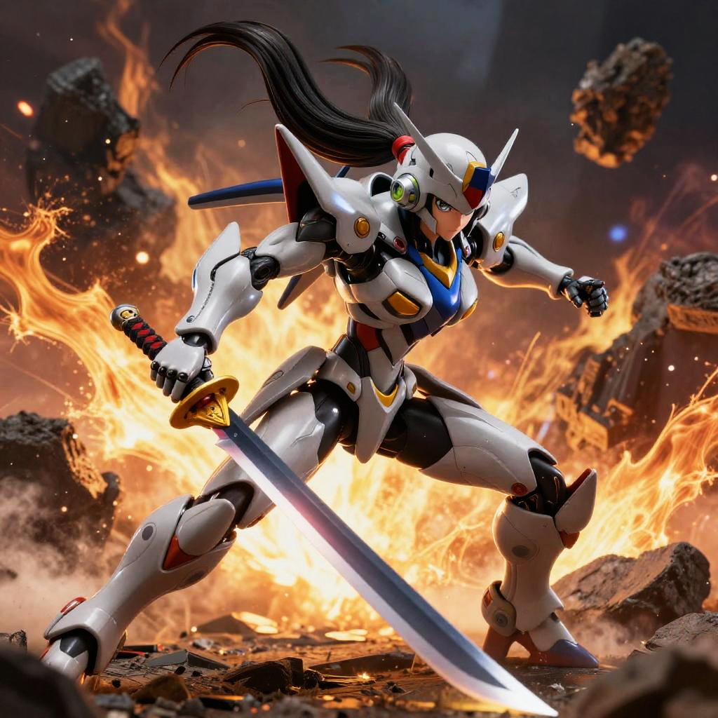 (blind box toy style:1.5)(dramatic, gritty, intense:1.4), masterpiece, best quality, 32k uhd, insane details, intricate details, hyperdetailed, hyper quality, high detail, ultra detailed, Masterpiece, super vista, Epic CG masterpiece, Fuyutsuki Kensuke, hdr, dtm, full ha, in the style of mecha anime, like a god The dancing long knife charging forward battlefield, the burst meteor, the fierce battle of fighting with his life, 8K, ultra detailed graphic tension, dynamic poses, stunning colors, 3D rendering, surrealism, cinematic lighting effects, realism, 00 renderer, super realistic, full - body photos, super wide Angle, HD, 1girl, (full body:1.7