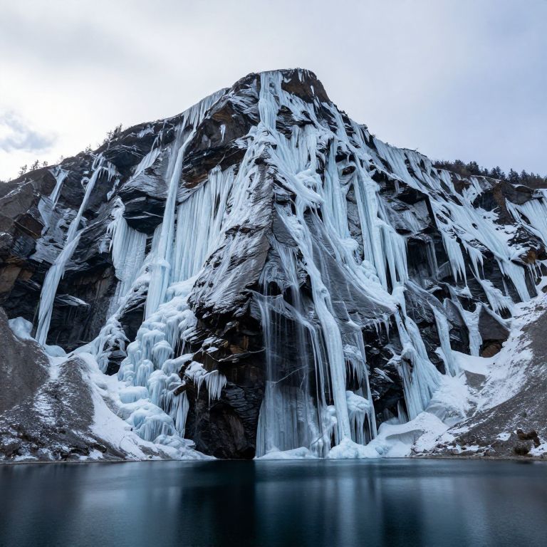 Upside Down Mountain with Frozen Waterfalls