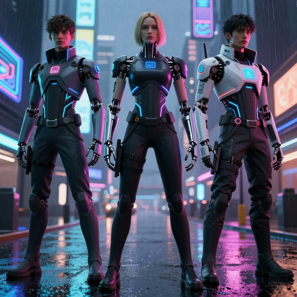 Futuristic Cyberpunk Characters in Neon City