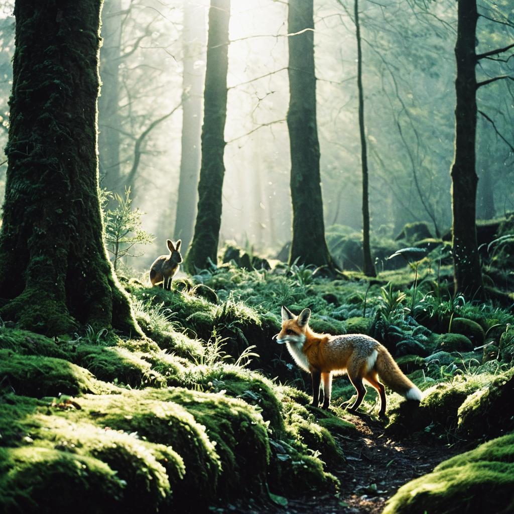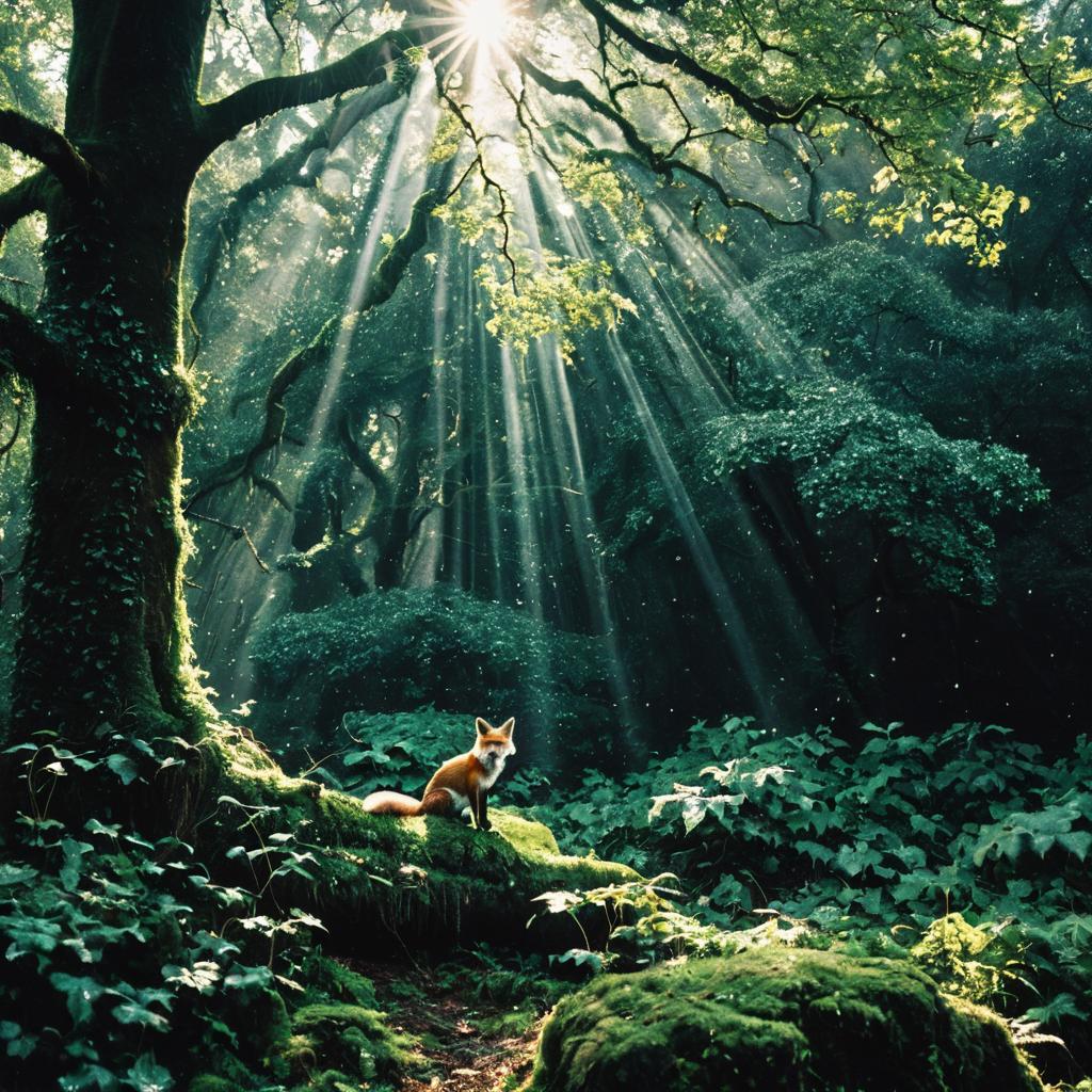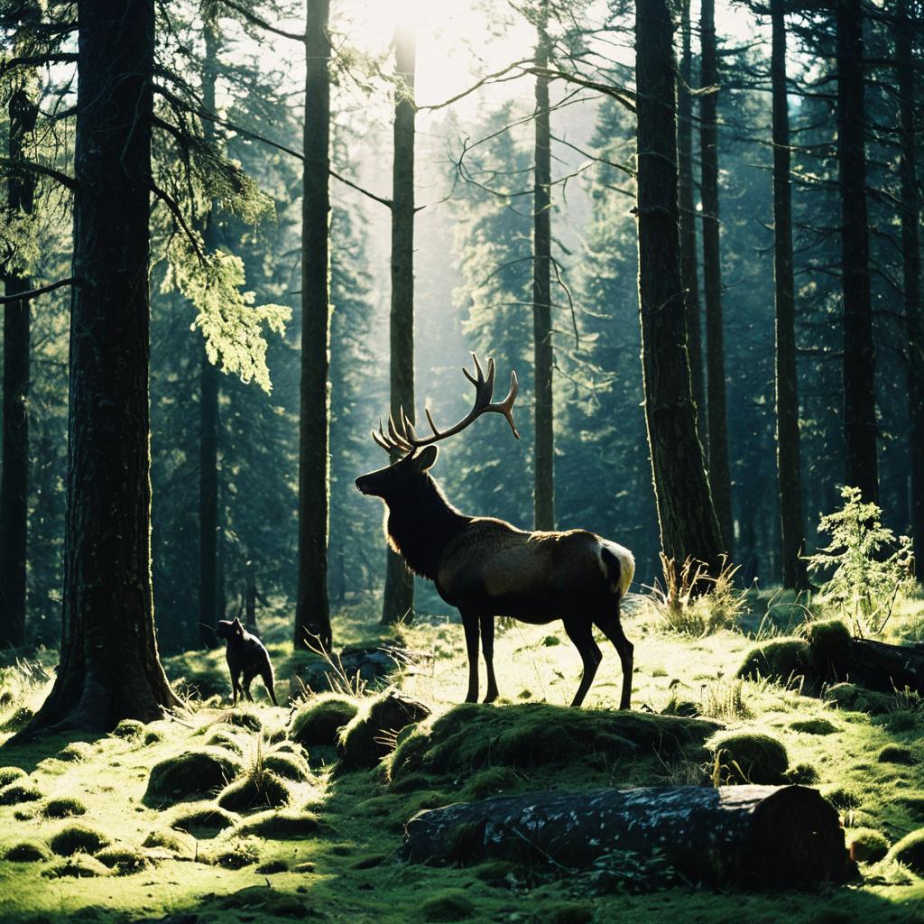 Serene Forest Scene with a Perched Raven