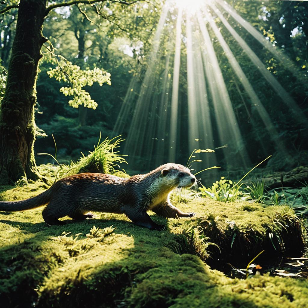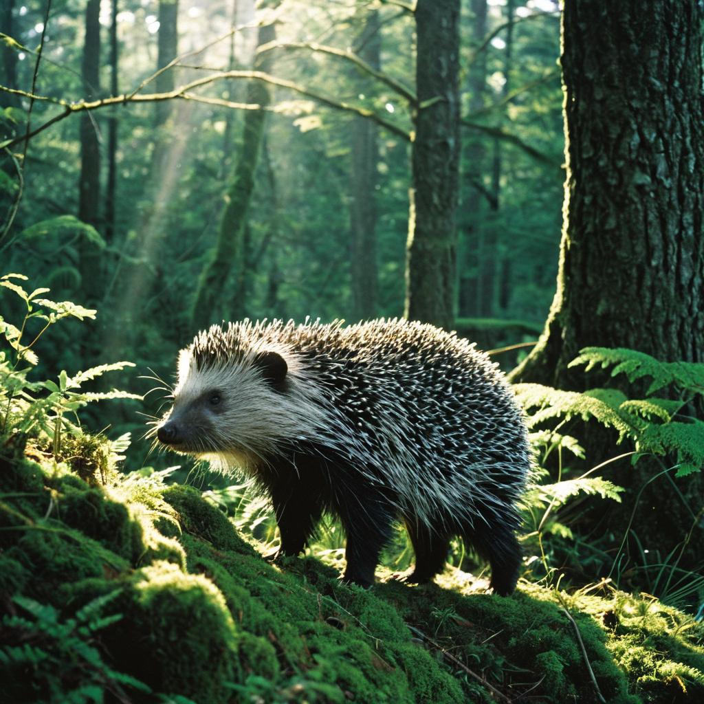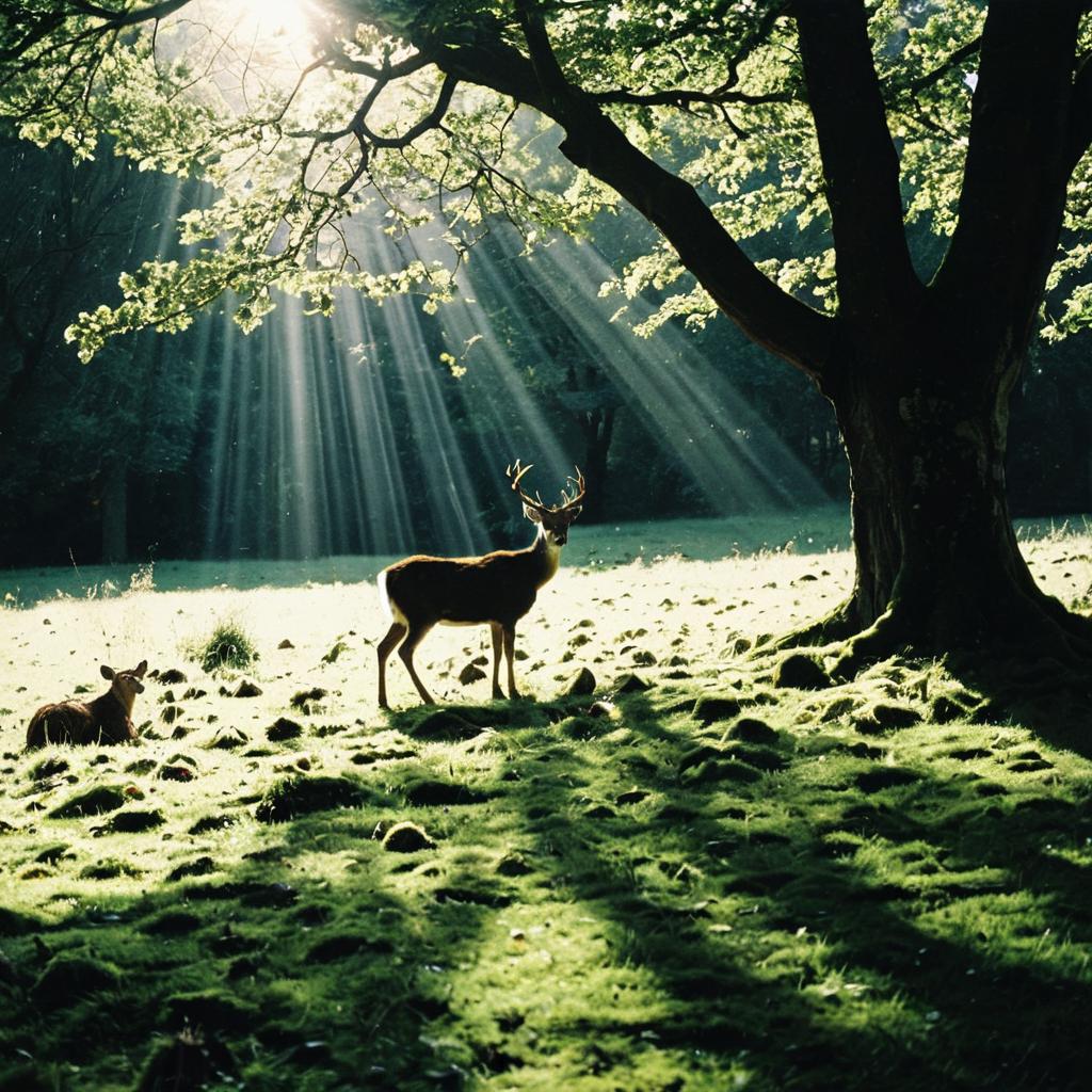 Serene Forest Scene with a Perched Raven