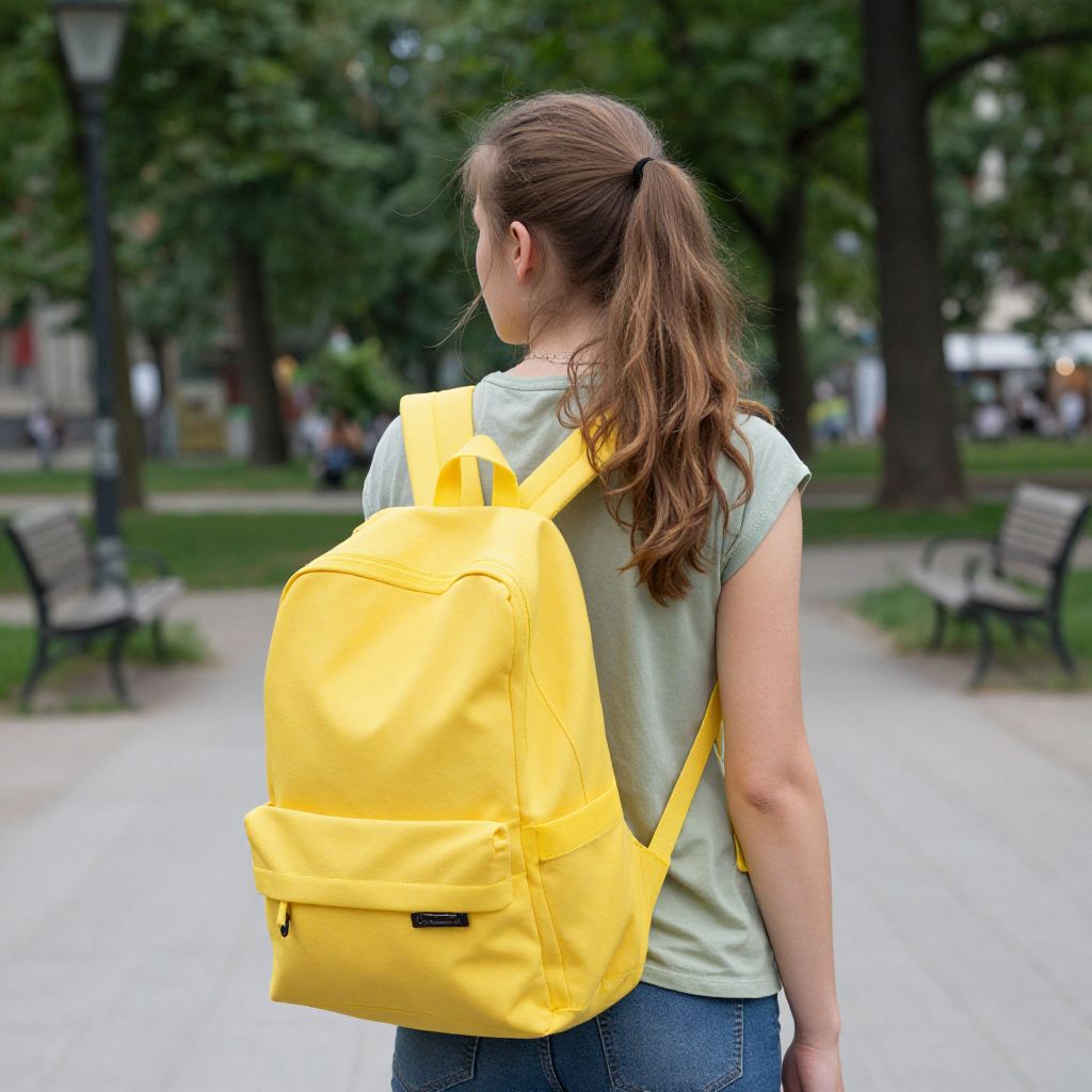 Young Woman with Yellow Backpack in Berlin Park