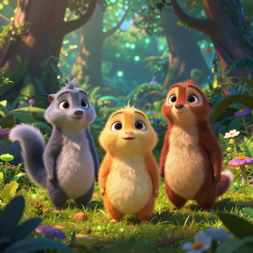 Highly detailed cinematic CGI illustration of three turbocharged mutant squirrels wreaking havoc inside an urban power grid transformer station, dramatic electric sparks and high voltage arcs flying across the scene, cables whipping, chaos and energy throughout
