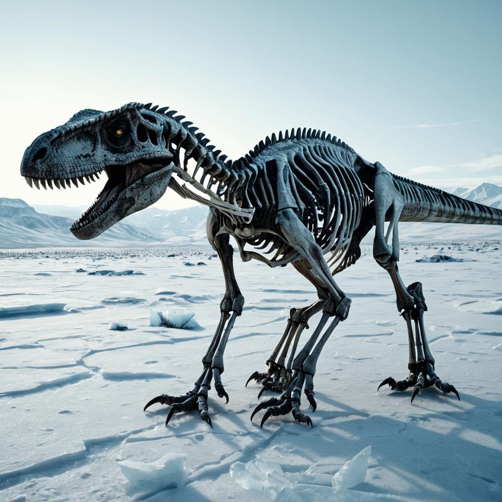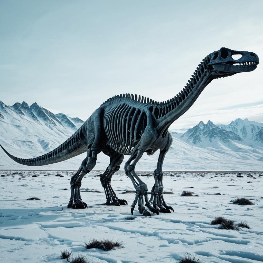 Diplodocus Skeleton in Icy Tundra
