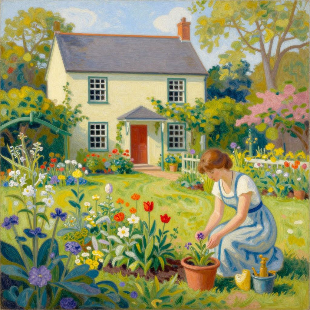 A House And Garden Cover Of A Woman Gardening Art Print By Ruth Easton