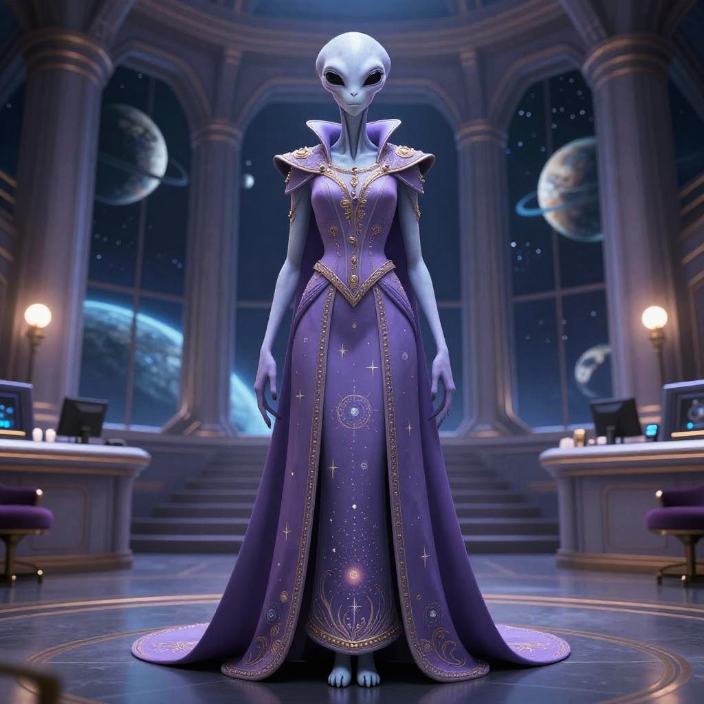 Alien Diplomat in Interstellar Council Chamber