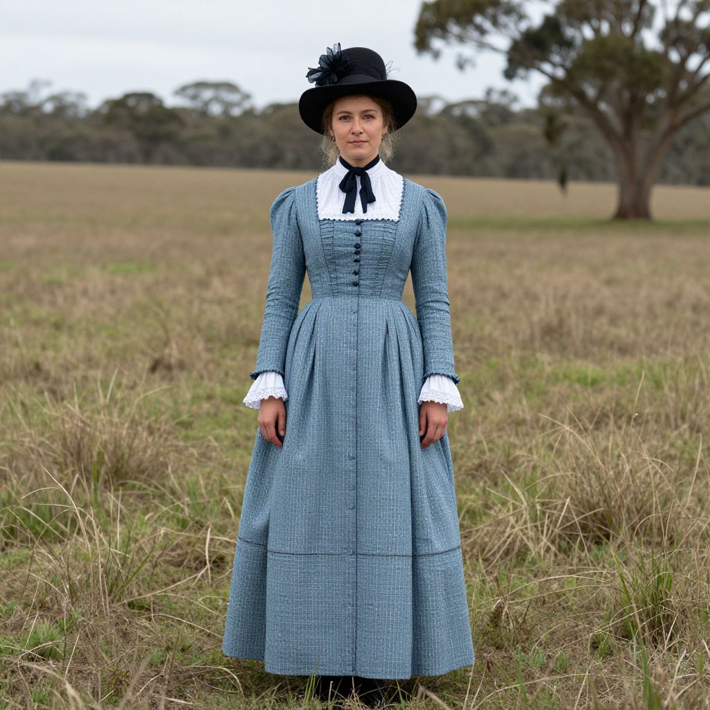 Colonial Australian Woman in Blue Dress