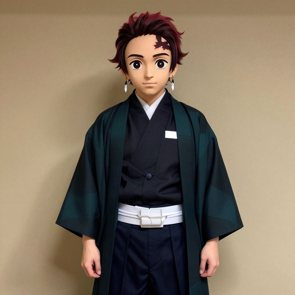 "Tanjiro Uniform, asian man in a kimono standing in front of a wall"