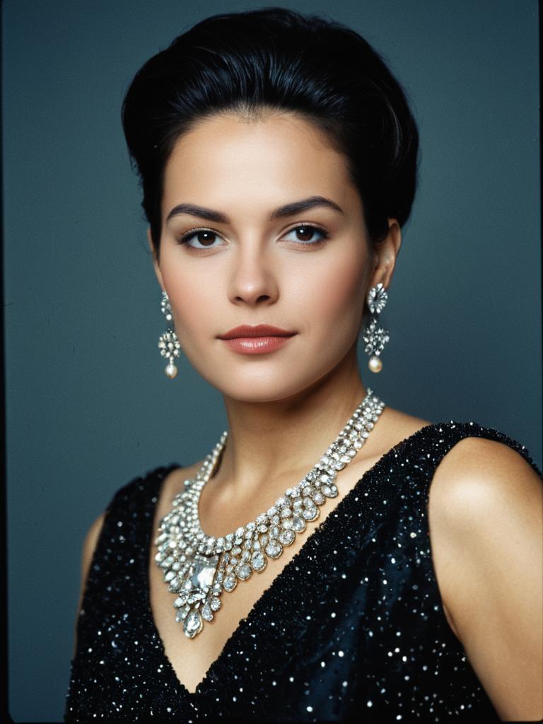 Woman in Gala Outfit, photorealistic detailed headshot with jewelry focus
