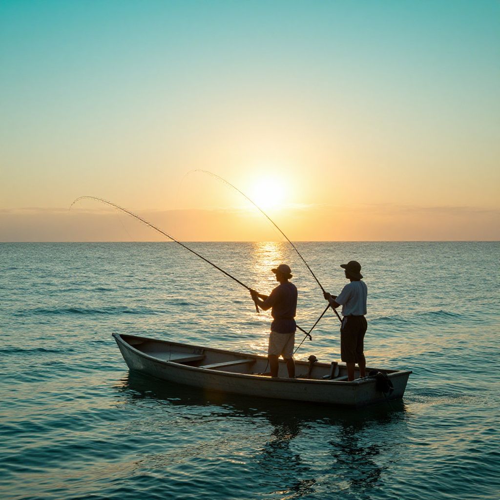 Fishermen and Airborne Fish Creatures